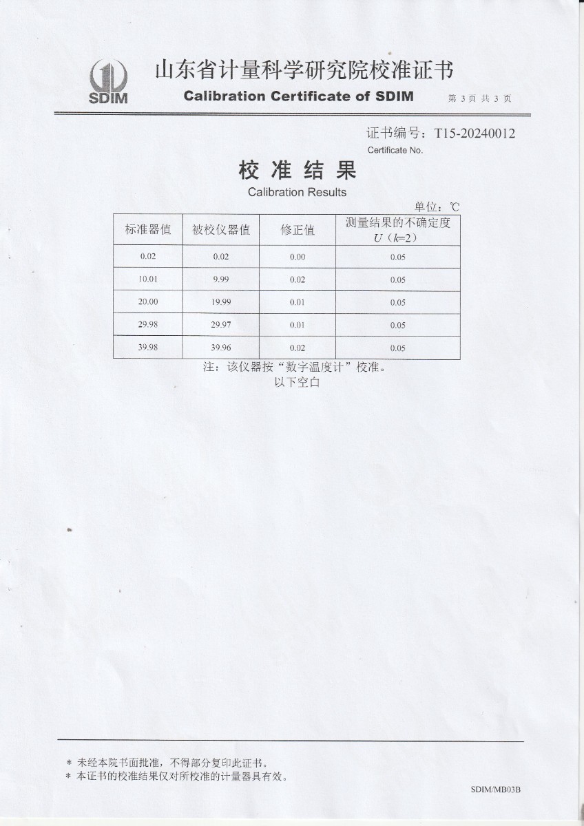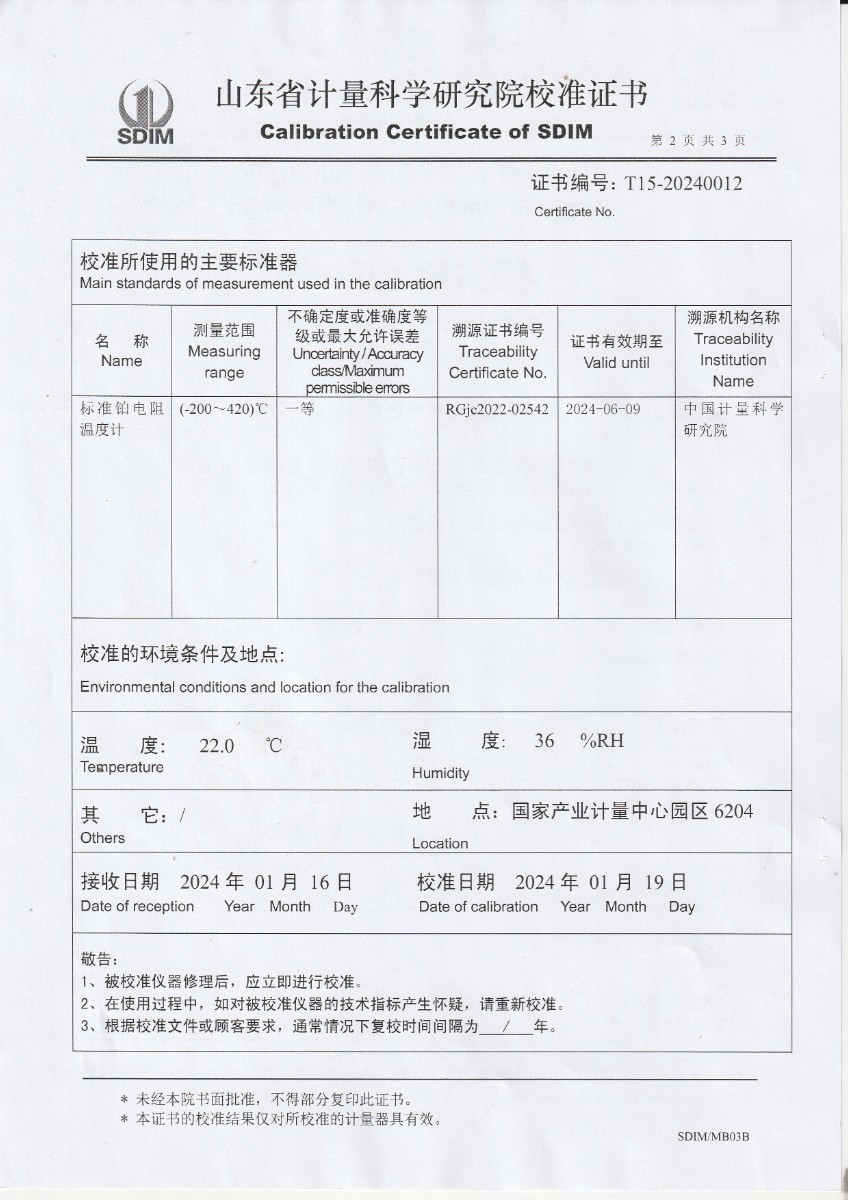 冷鏡式露點儀校準證書 2024-1-31 本文被閱讀 10267 次