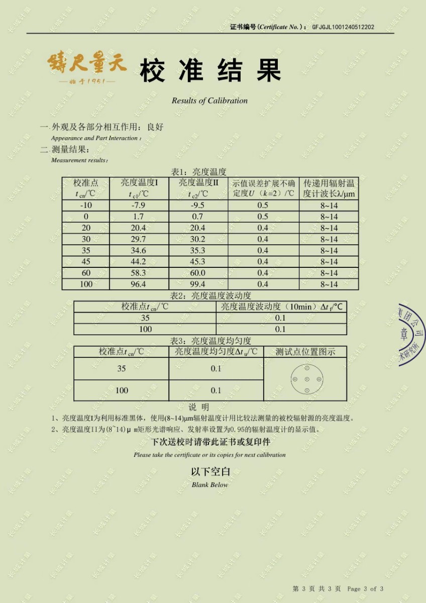 高精度低溫黑體234校準(zhǔn)證書
