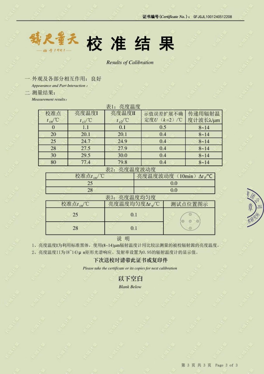 面源黑體爐校準(zhǔn)證書(shū) 2024-5-31 本文被閱讀 7400 次