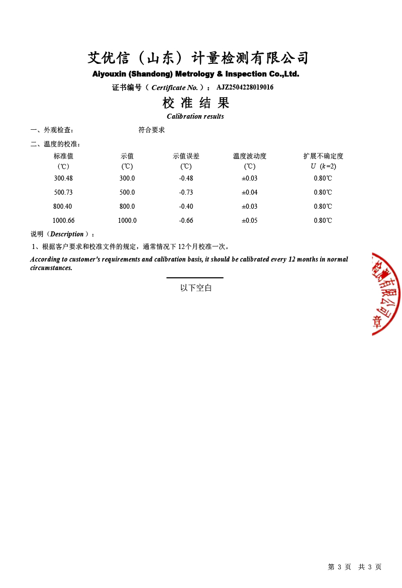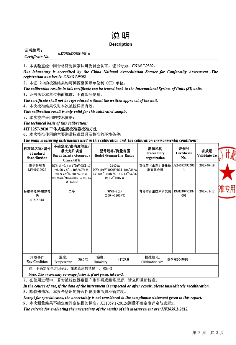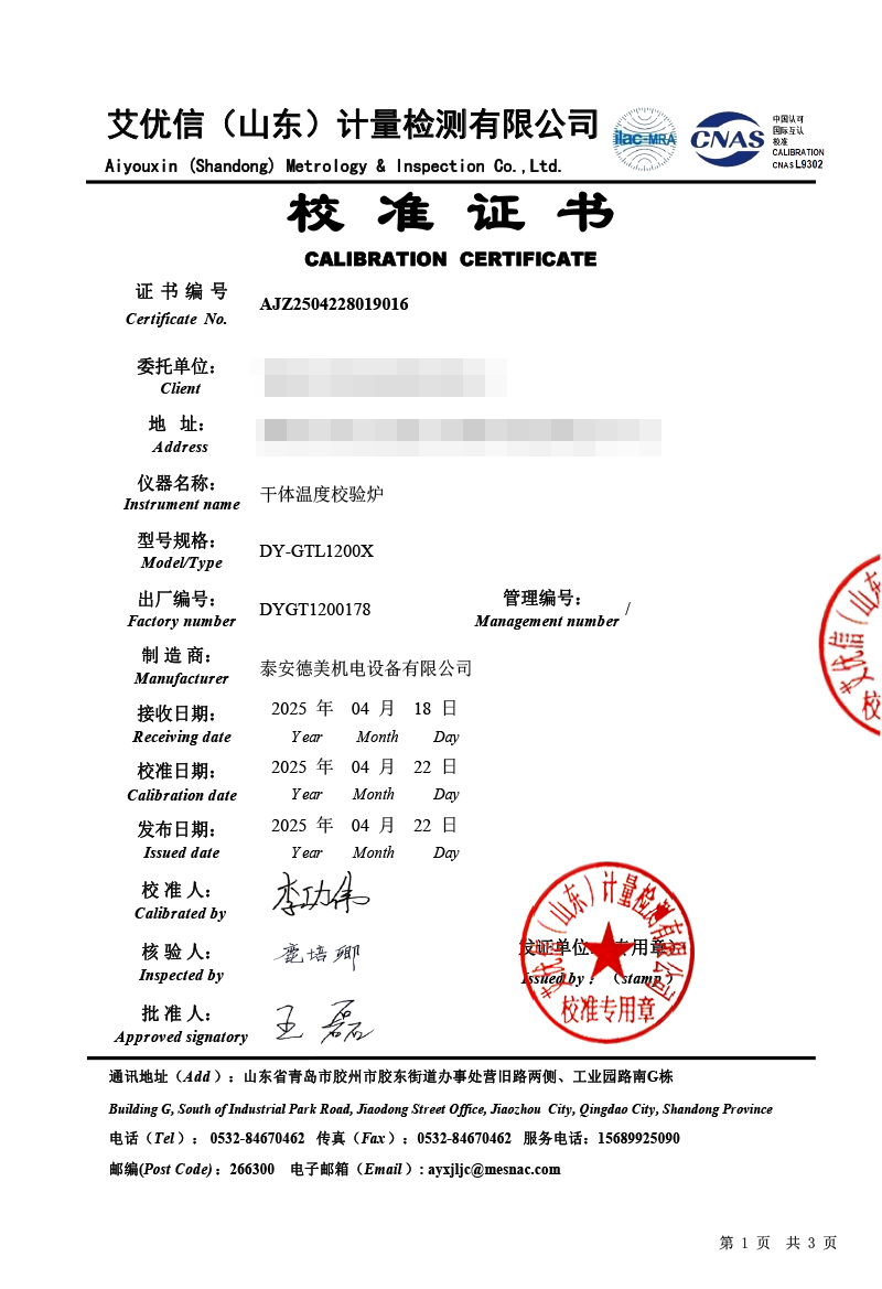 干體溫度校驗爐(300-1200℃)校準證書 2025-4-24 本文被閱讀 3946 次
