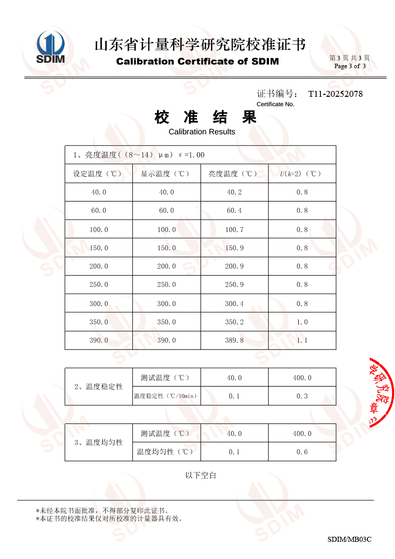 中溫黑體校準(zhǔn)證書 2025-12-4 本文被閱讀 1389 次