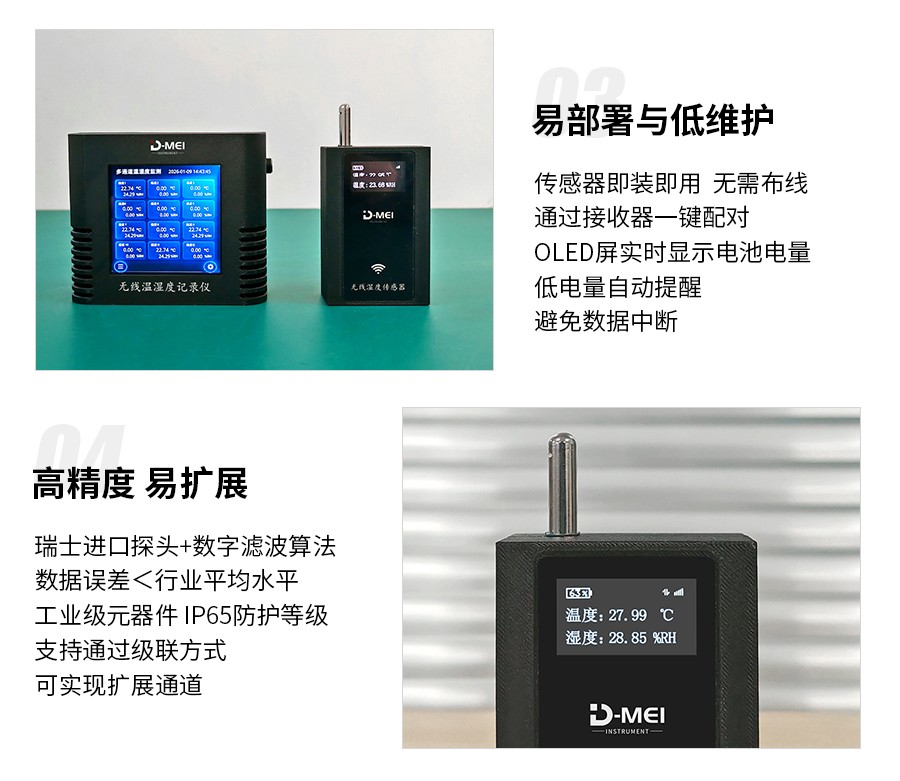 無線溫濕度采集系統(tǒng)是一款高精度、多通道、易部署的環(huán)境監(jiān)測解決方案,由無線溫濕度傳感器和無線接收器兩部分組成。系統(tǒng)采用瑞士Sensirion原裝溫濕度探頭,結(jié)合2.4G無線通信技術(shù)與工業(yè)級顯示模塊,支持多只傳感器同步監(jiān)測,適用于實(shí)驗(yàn)室、倉儲、農(nóng)業(yè)大棚、機(jī)房等多場景的溫濕度實(shí)時(shí)監(jiān)控與數(shù)據(jù)追溯。