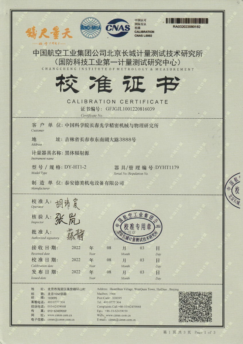 | 上一條:中國科學(xué)院長春光學(xué)精密機(jī)械與物理研究所-黑體爐DY-HT1-1 | 下一條:DY-HT2M-C高溫面源黑體爐(100mm) |