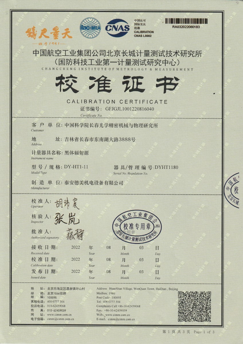 中國科學院長春光學精密機械與物理研究所-黑體爐DY-HT1-11 2022-9-5 本文被閱讀 13549 次
