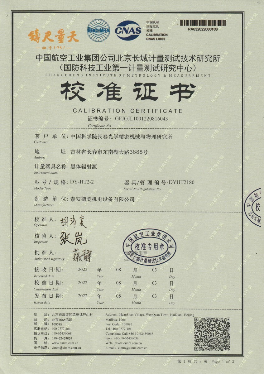 中國(guó)科學(xué)院長(zhǎng)春光學(xué)精密機(jī)械與物理研究所-黑體爐DY-HT2-2 2022-9-5 本文被閱讀 13670 次