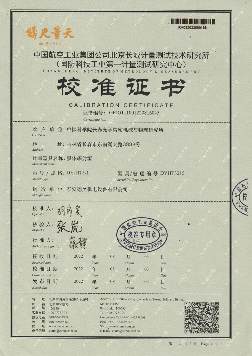 | 上一條:中國科學(xué)院長春光學(xué)精密機械與物理研究所-黑體爐DY-HT2-11 | 下一條:DY-HT2M-C高溫面源黑體爐(100mm) |