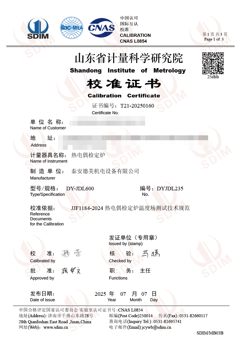 熱電偶檢定爐(300-1200℃)校準(zhǔn)證書 2025-7-10 本文被閱讀 4111 次