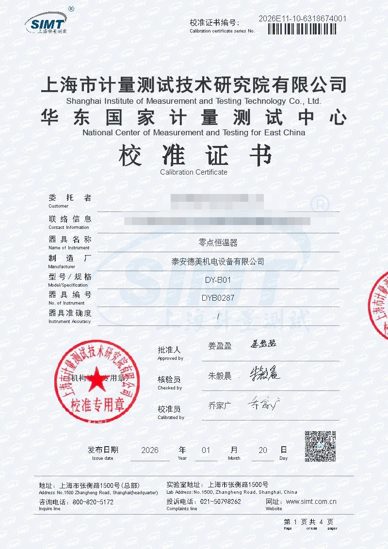 零點恒溫器-校準證書 2026-1-26 本文被閱讀 420 次