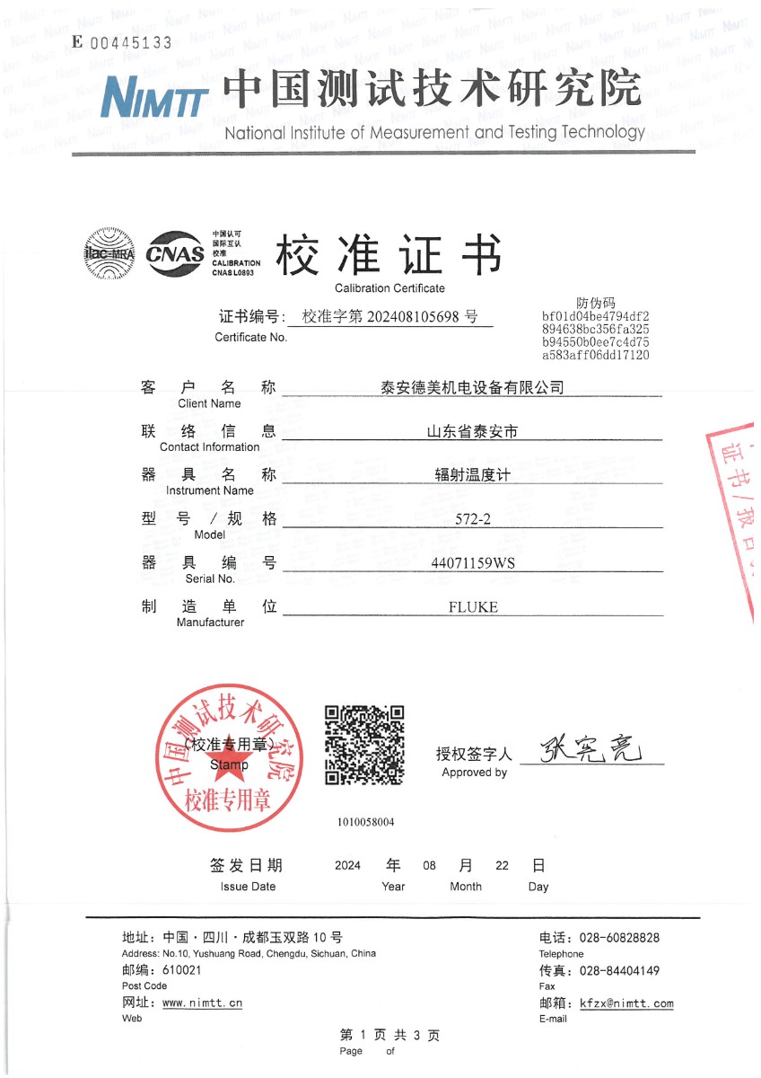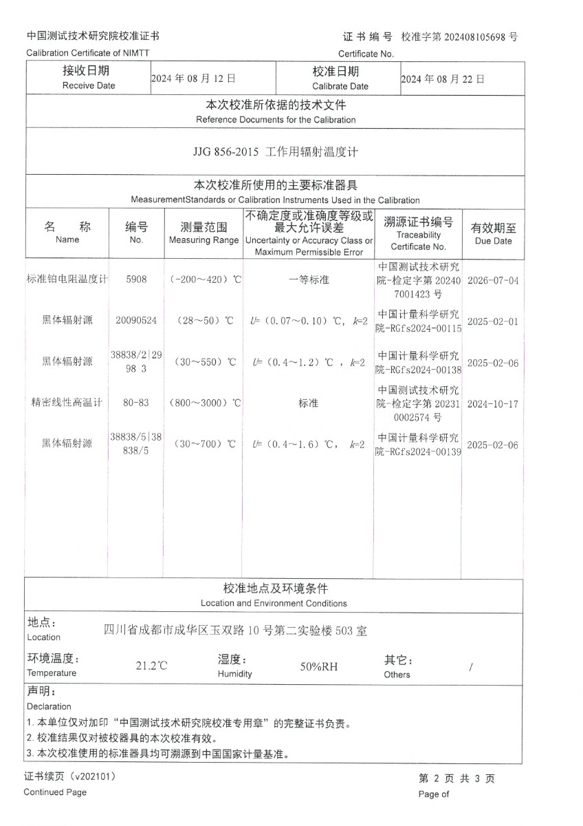 | 上一條:高精度數(shù)字溫度計(-80~300℃)校準證書 | 下一條:DY-HT2M-C高溫面源黑體爐(100mm) |