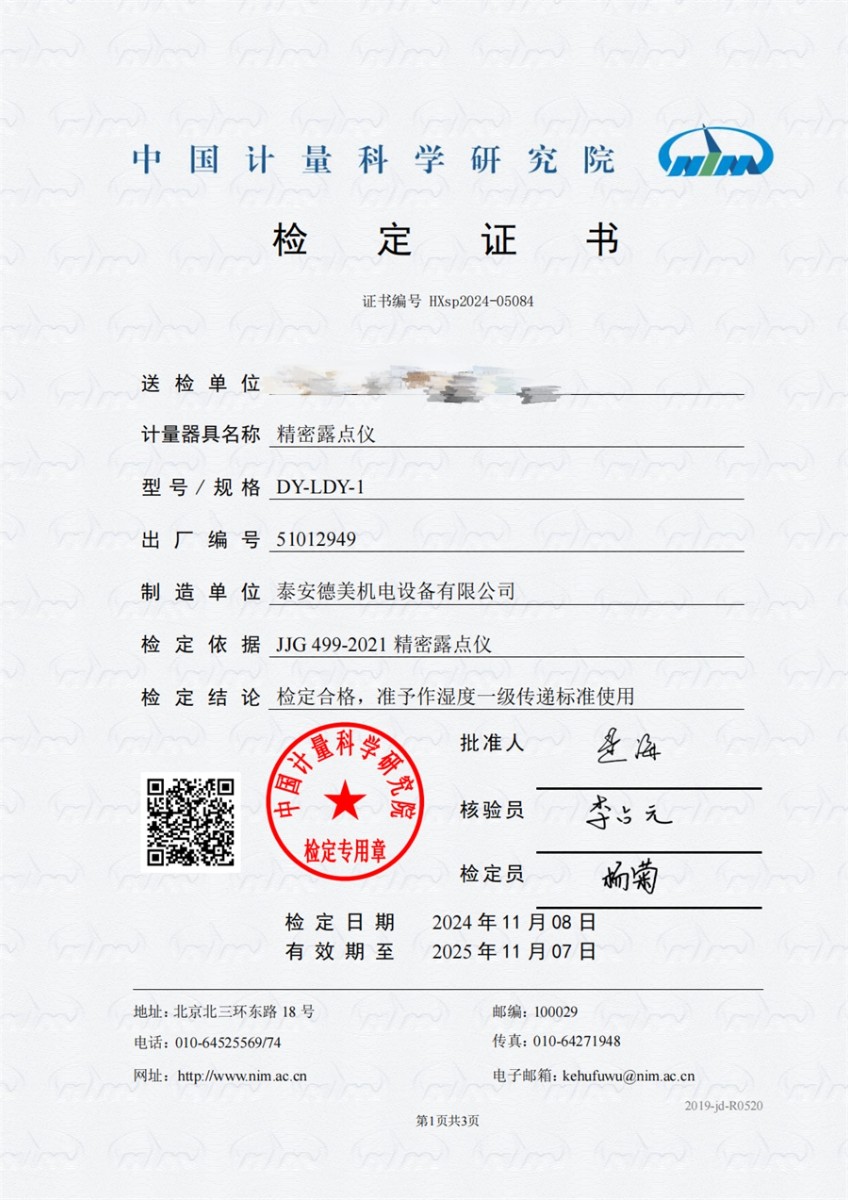 冷鏡式露點(diǎn)儀檢定證書 2024-11-21 本文被閱讀 7473 次