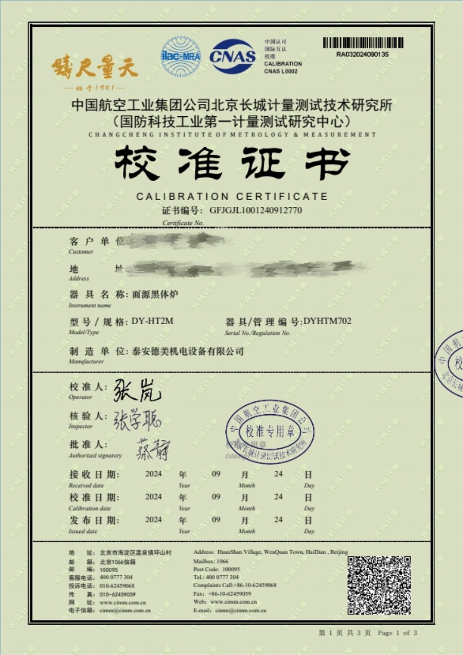 面源黑體爐校準(zhǔn)證書 2024-11-27 本文被閱讀 7982 次