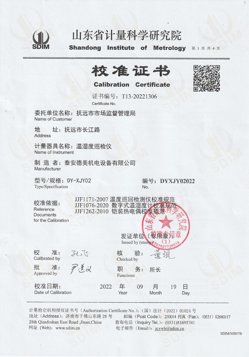 | 上一條:晶科能源(肥東)有限公司-冷鏡式露點(diǎn)儀校準(zhǔn)證書 | 下一條:中溫面源黑體爐-校準(zhǔn)證書 |