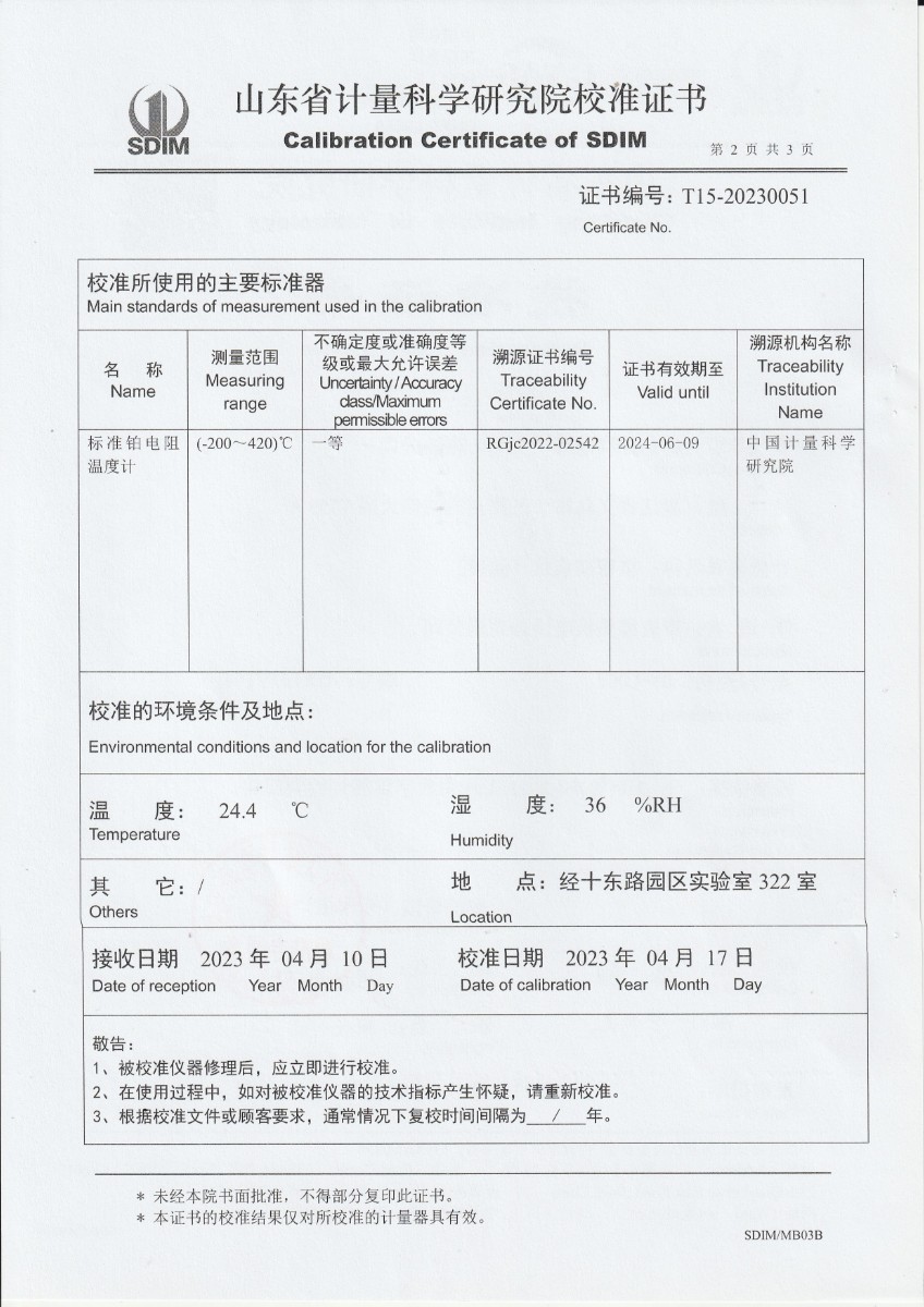 晶科能源(義烏)有限公司 精密露點儀(溫度)校準證書 2023-5-4 本文被閱讀 13480 次