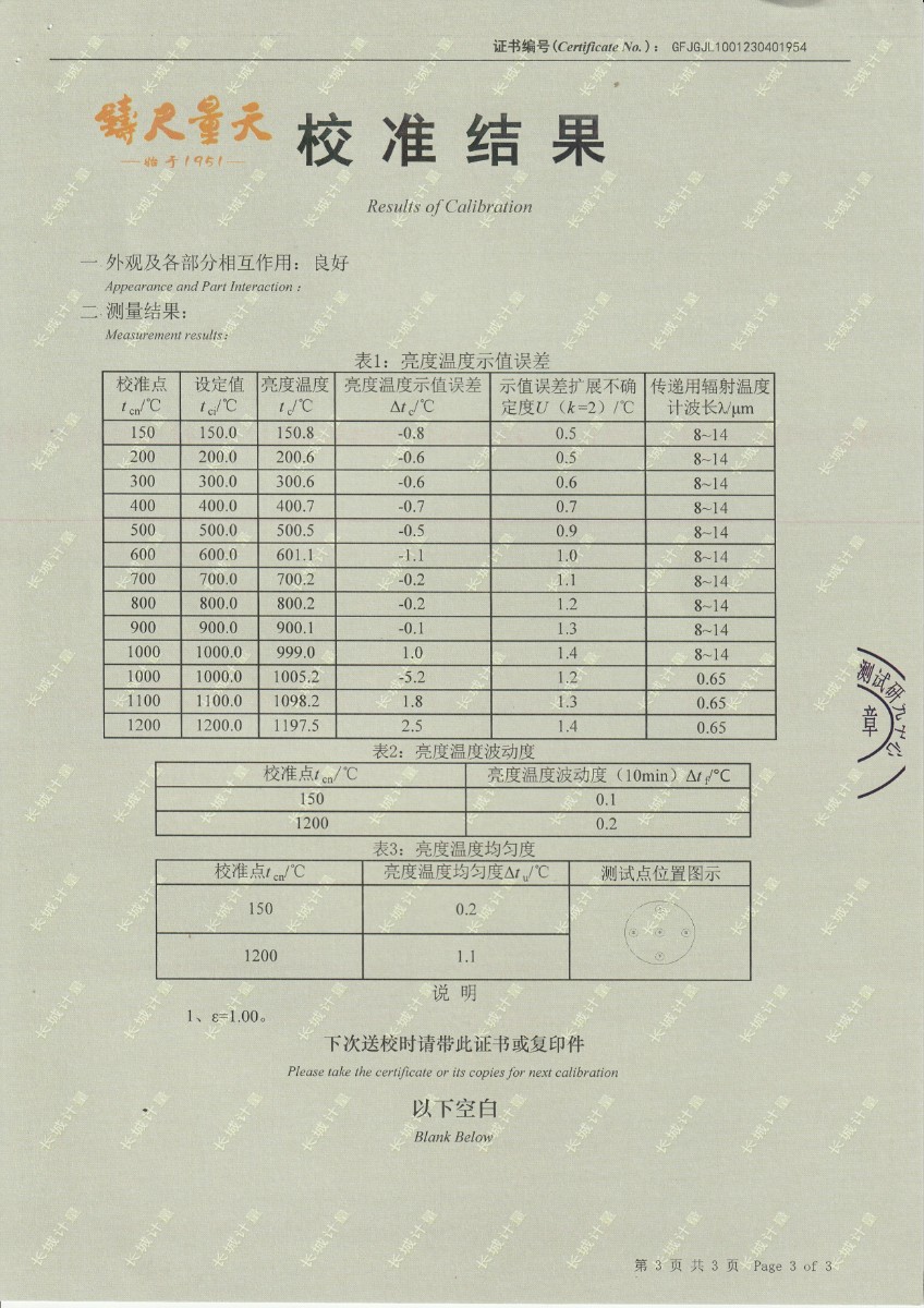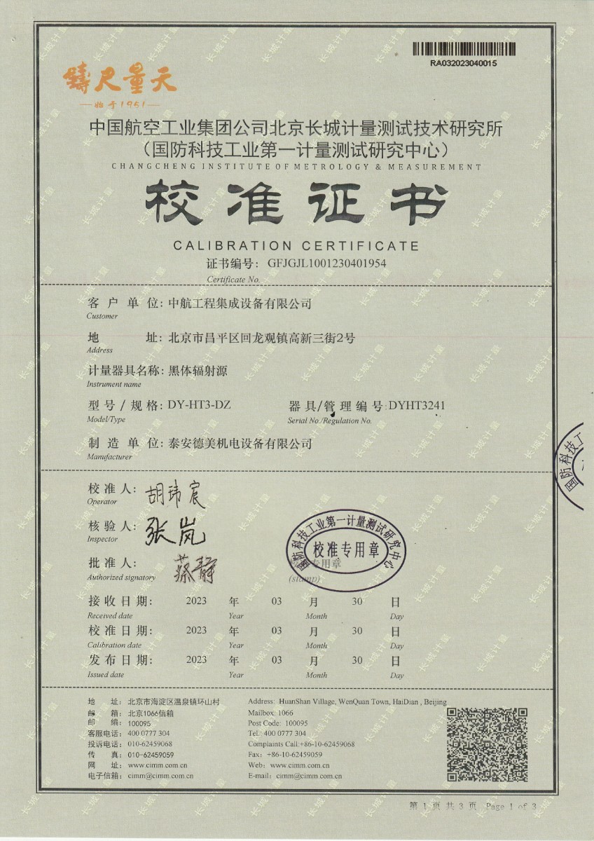 | 上一條:中航工程集成設(shè)備有限公司 黑體輻射源 校準(zhǔn)證書 (1) | 下一條:DY-HT2M-C高溫面源黑體爐(100mm) |