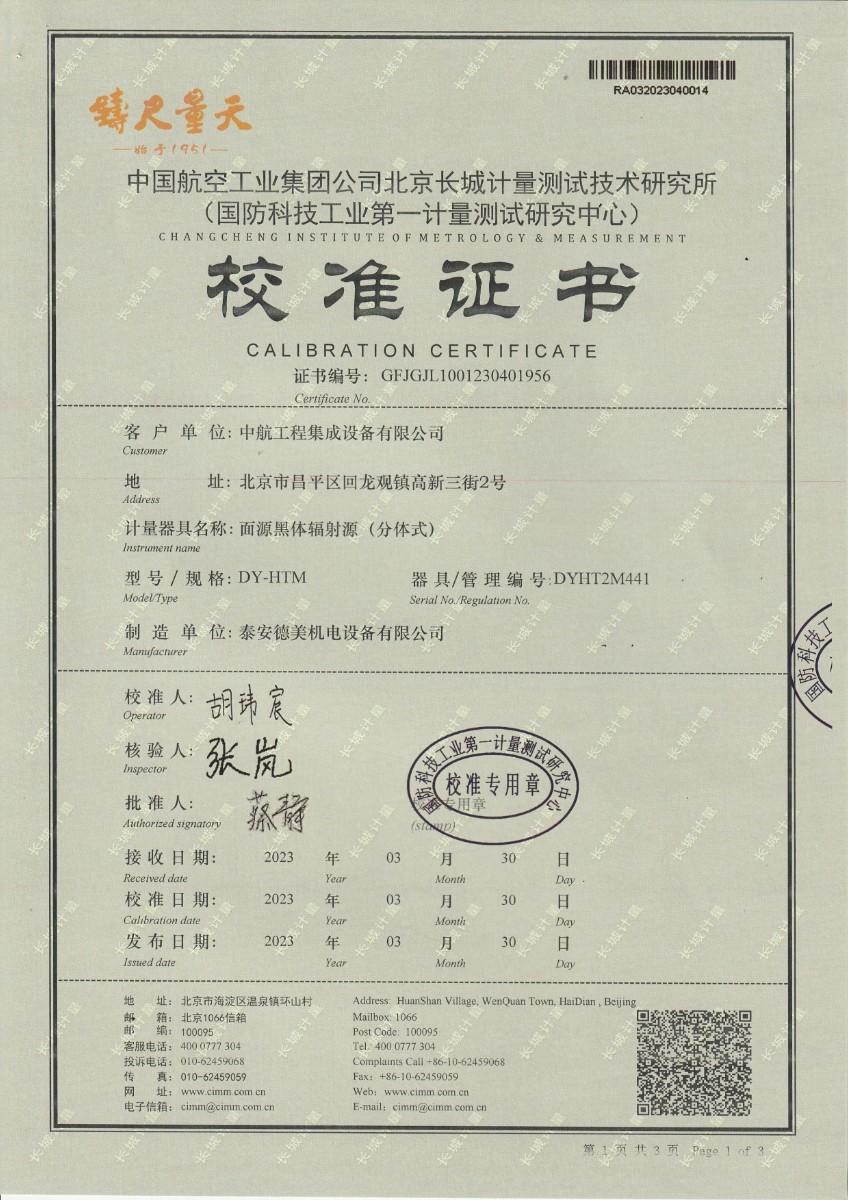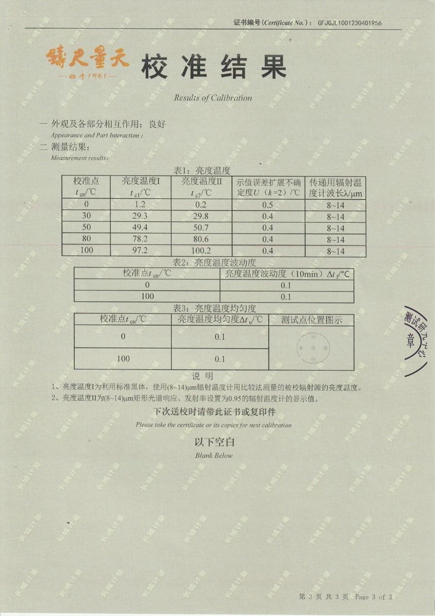 | 上一條:中航工程集成設(shè)備有限公司 黑體輻射源 校準(zhǔn)證書 (2) | 下一條:DY-HT2M-C高溫面源黑體爐(100mm) |
