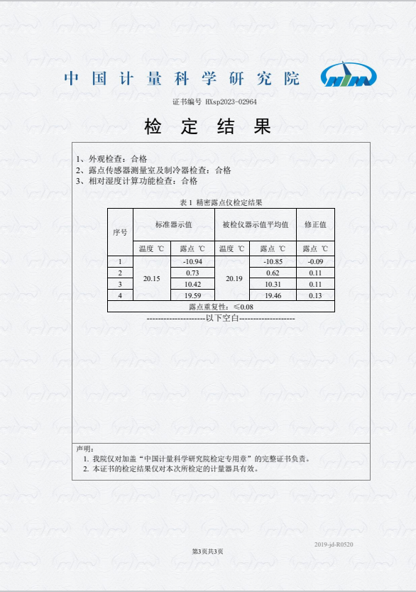 露點(diǎn)儀檢定證書(shū) 2023-11-9 本文被閱讀 10139 次