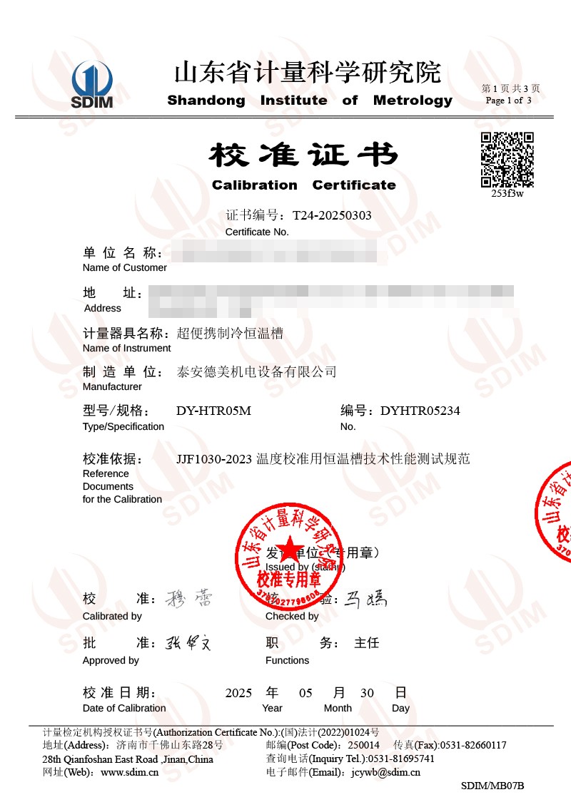 | 上一條:腔式黑體輻射源(800-1450℃)校準(zhǔn)證書 | 下一條:DY-HT2M-C高溫面源黑體爐(100mm) |