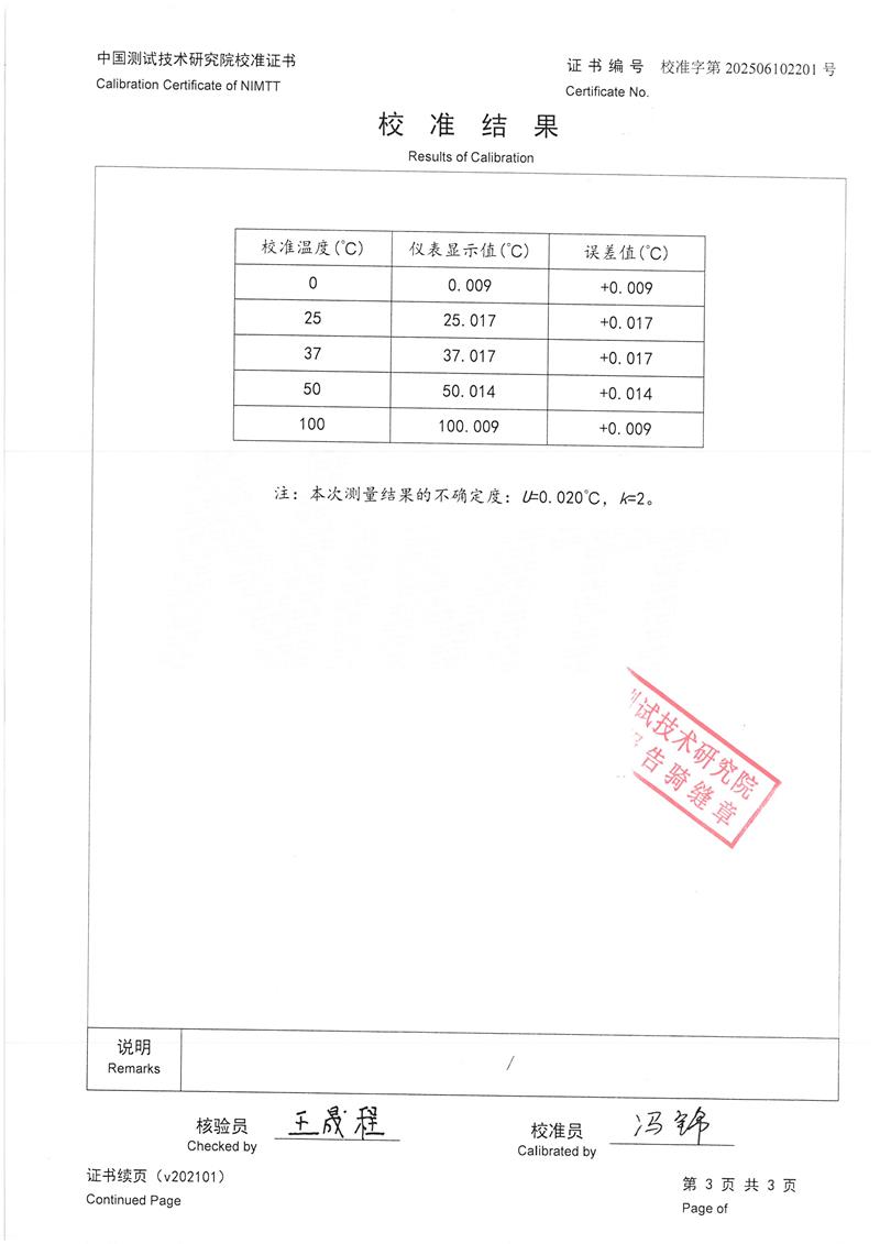數(shù)字溫度計(-20~150℃)校準證書 2025-6-13 本文被閱讀 4586 次