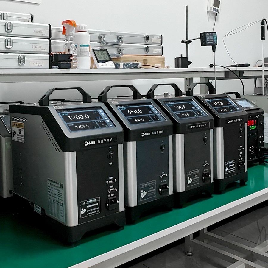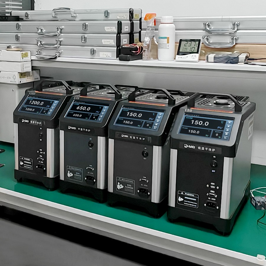 干體爐能夠提供一個(gè)穩(wěn) 定的、均勻的、準(zhǔn)確的溫度環(huán)境(溫場(chǎng)),提供了類似于恒溫槽(液浴槽)的性能,但是干體爐卻攜帶方便,不需要放置液體。干體爐到達(dá)預(yù)定溫度點(diǎn)并且溫度穩(wěn) 定的時(shí)間比恒溫槽快5到10倍,這樣可以大大節(jié)省校準(zhǔn)人員的時(shí)間,提高溫度檢定速度。干體爐的便攜性使其能夠到現(xiàn)場(chǎng)進(jìn)行校準(zhǔn)工作,從而解決了恒溫槽在運(yùn)輸移動(dòng)上的困難。 通過干體爐可以方便地校準(zhǔn)溫度傳感器、水銀溫度計(jì)、膨脹式溫度計(jì)、熱電偶、熱電阻、等溫度傳感器。