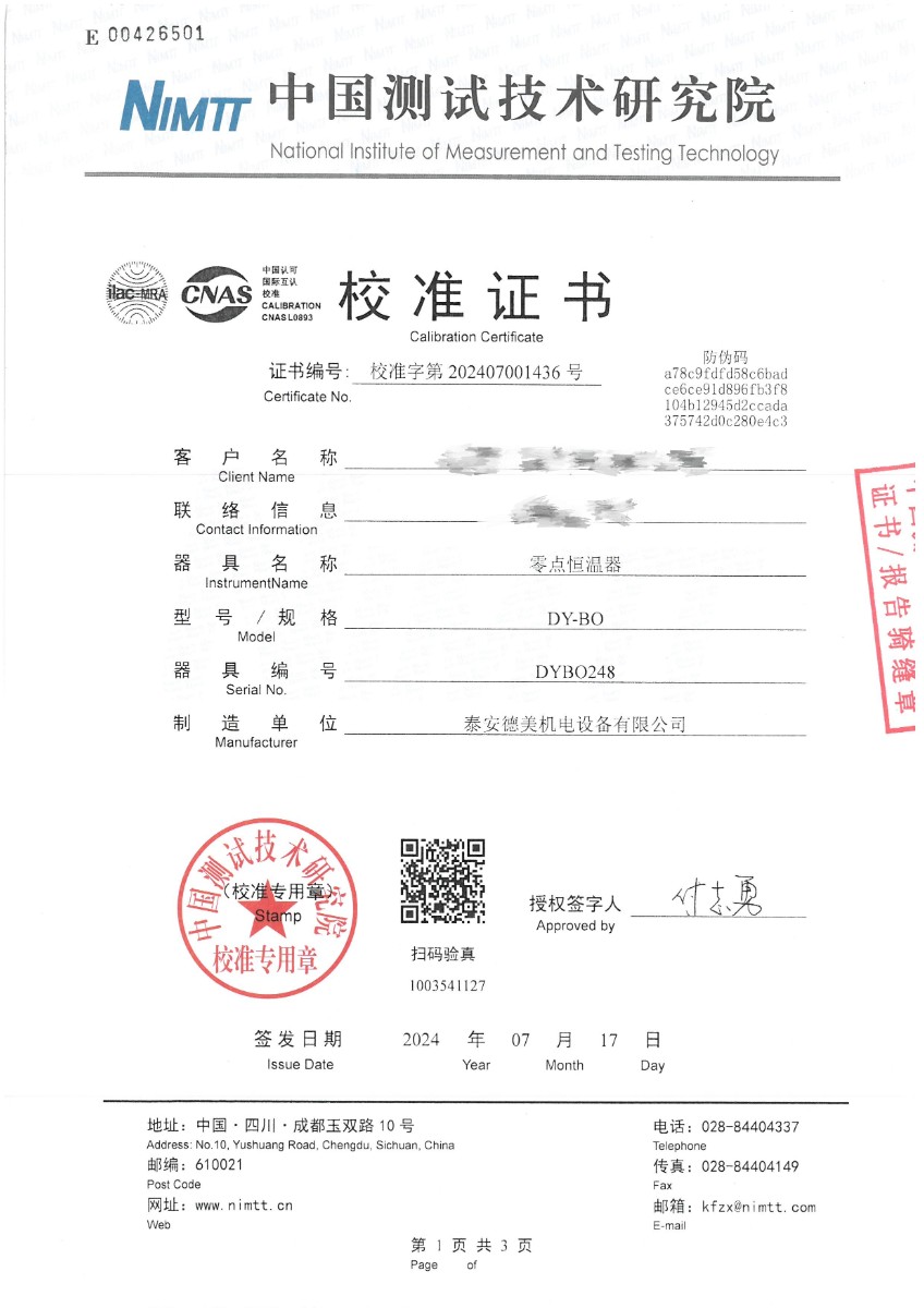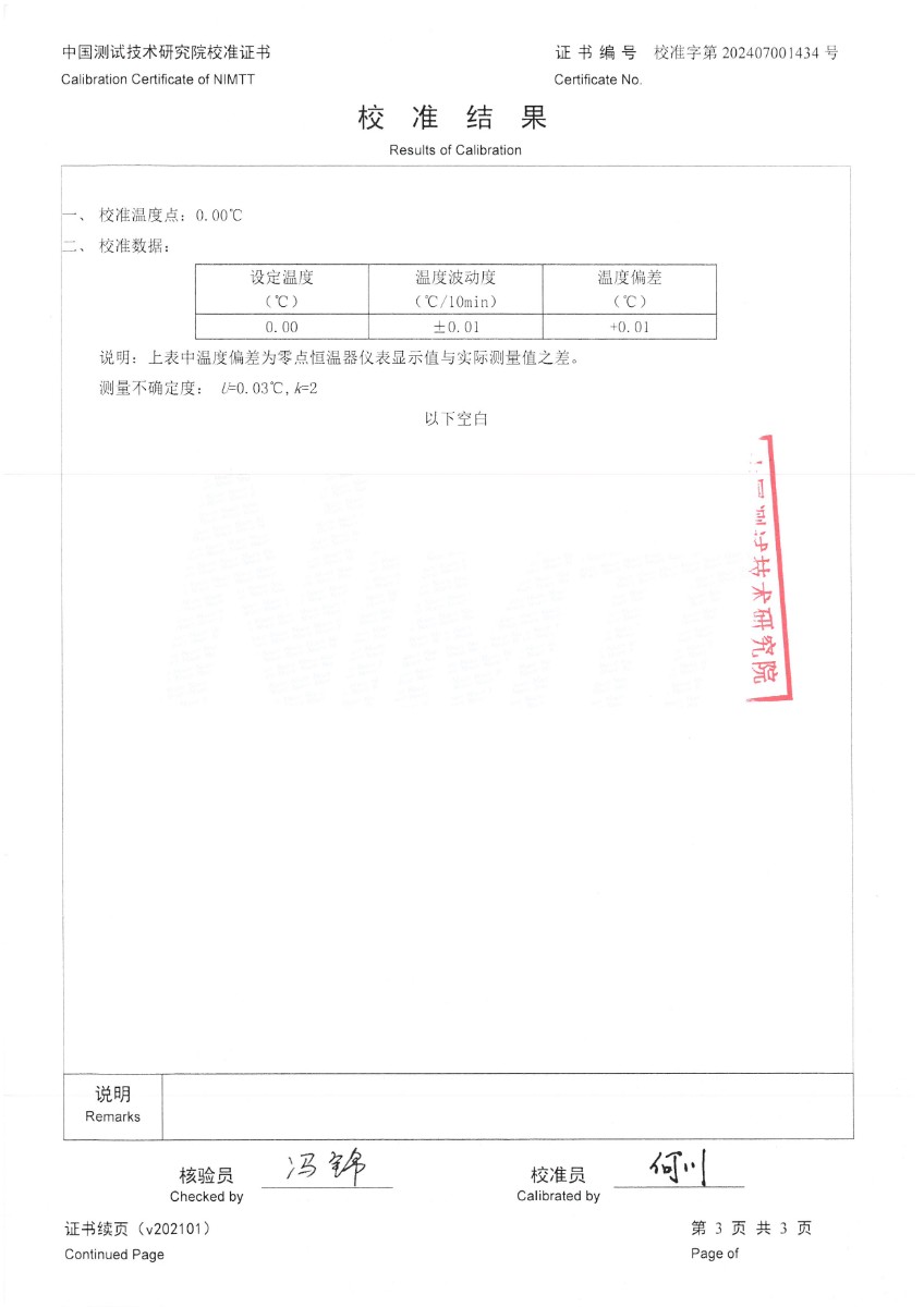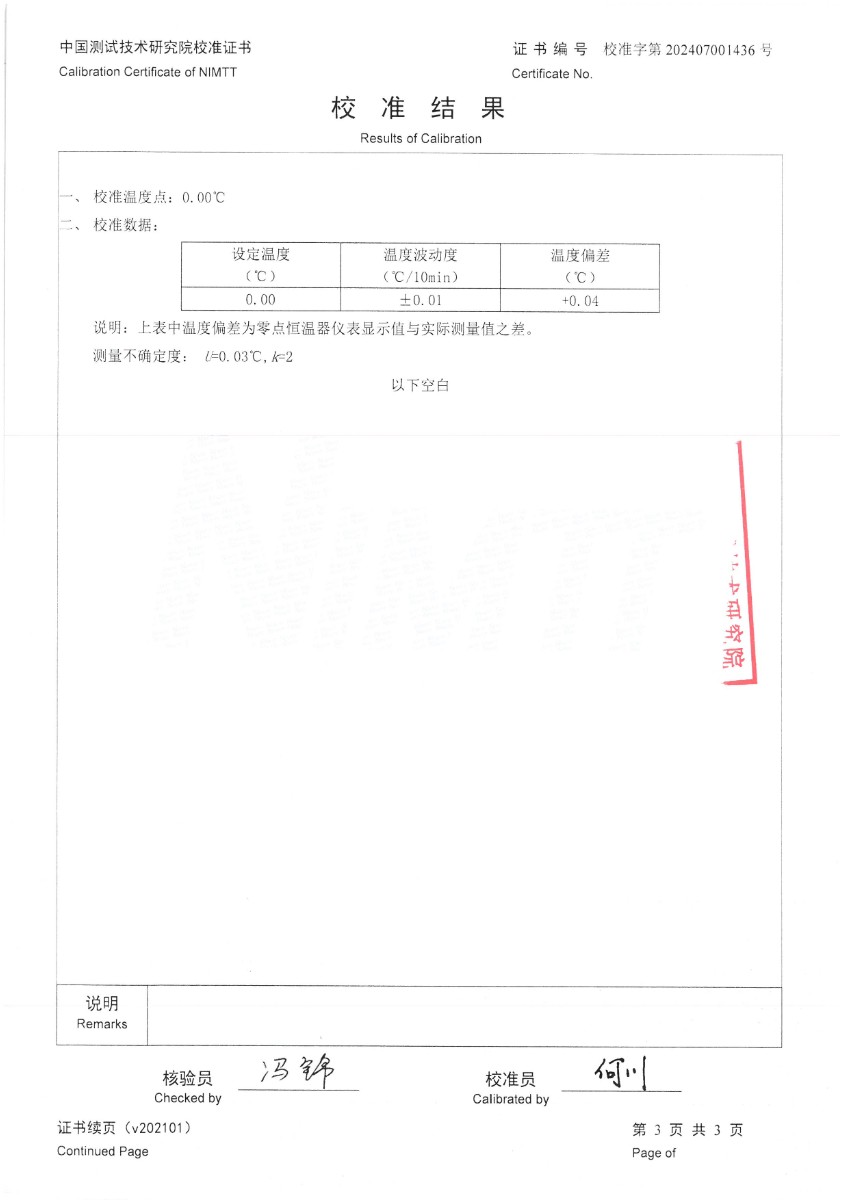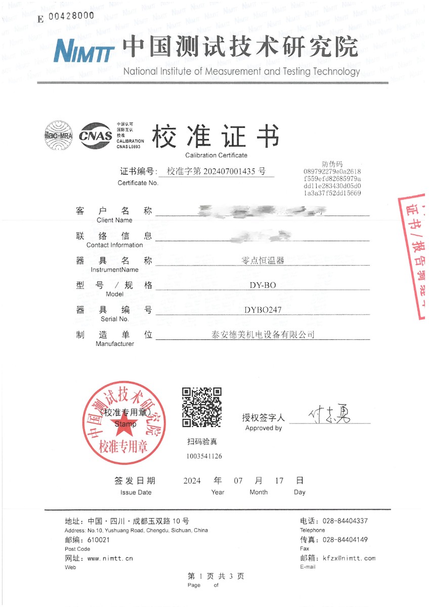 零點恒溫器校準(zhǔn)證書 2024-7-19 本文被閱讀 7393 次