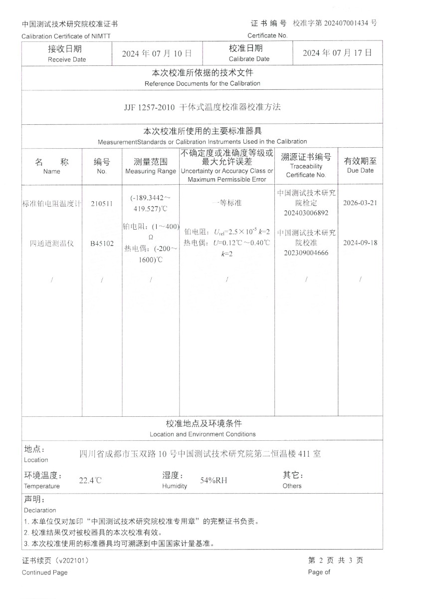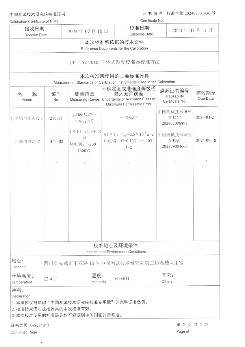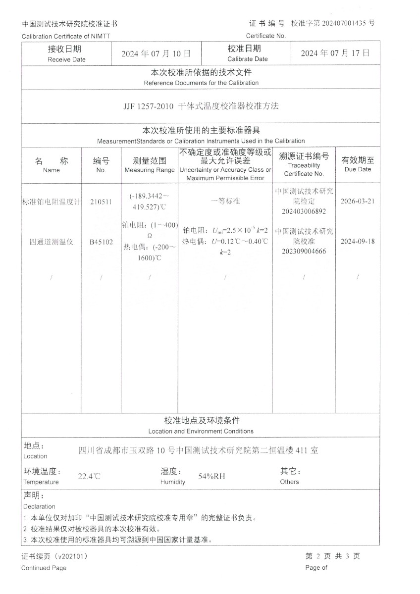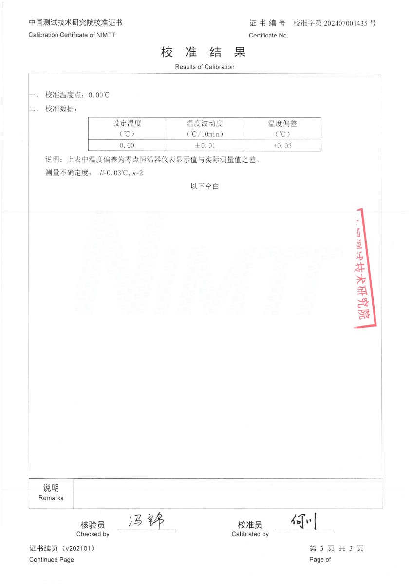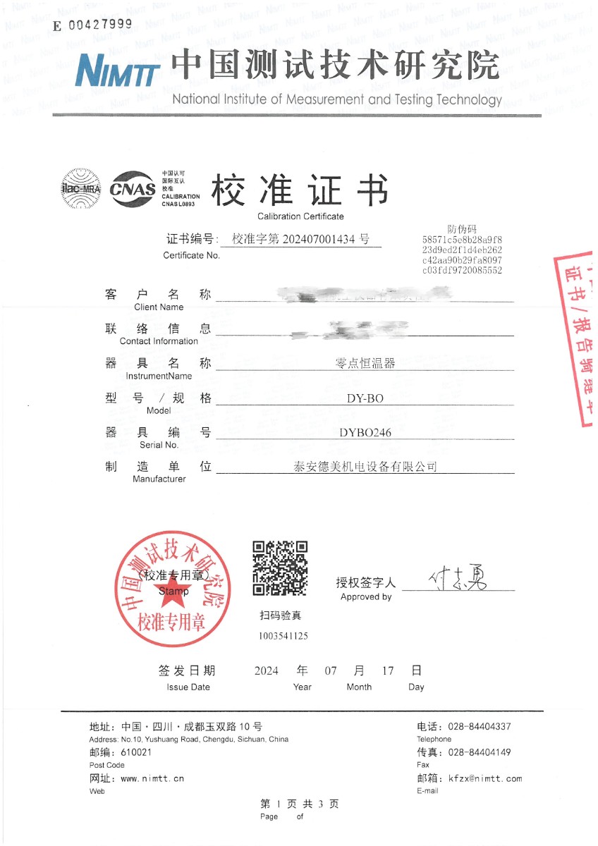 零點恒溫器校準(zhǔn)證書 2024-7-19 本文被閱讀 7393 次