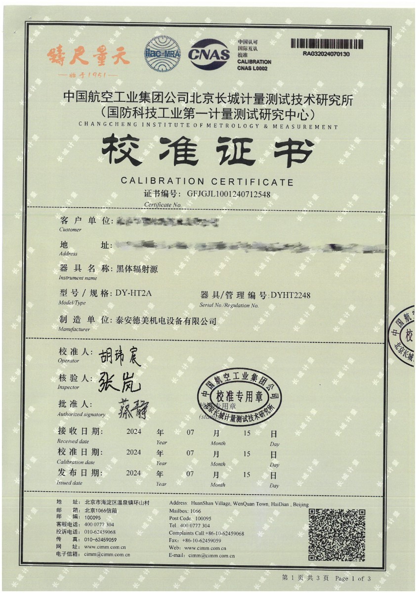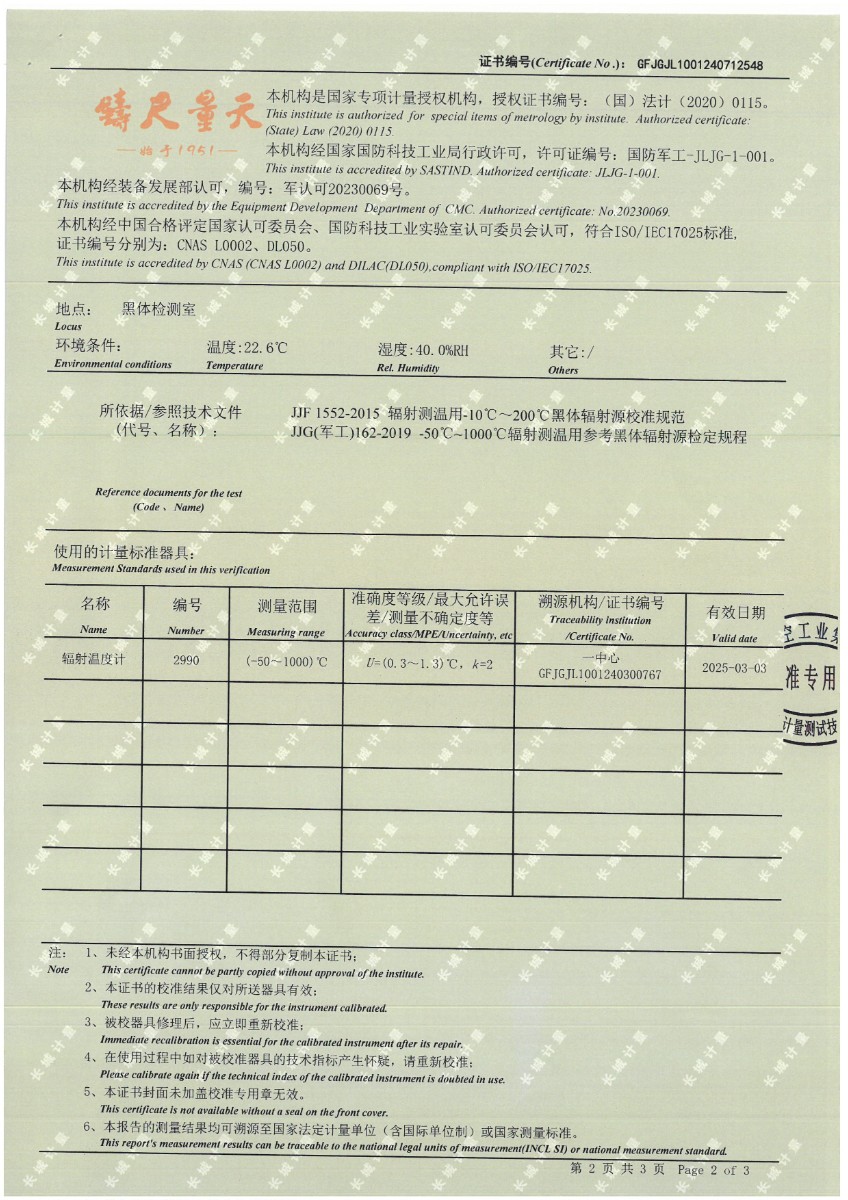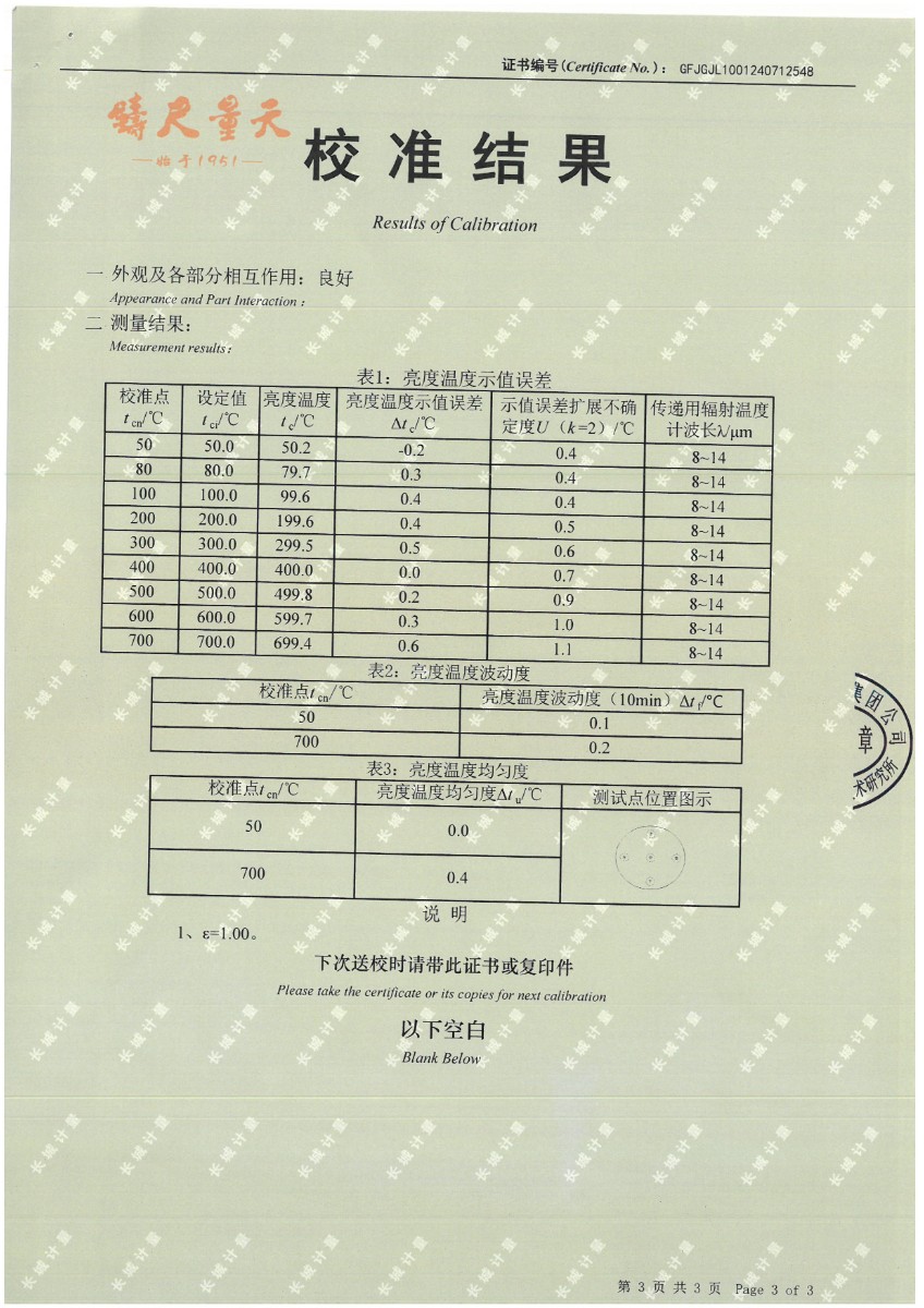 黑體(50~700℃)校準(zhǔn)證書 2024-7-29 本文被閱讀 10967 次