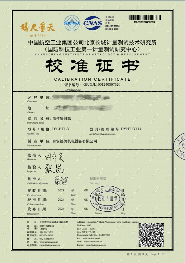 | 上一條:溫濕度場測試系統(tǒng)校準(zhǔn)證書 | 下一條:DY-HT2M-C高溫面源黑體爐(100mm) |