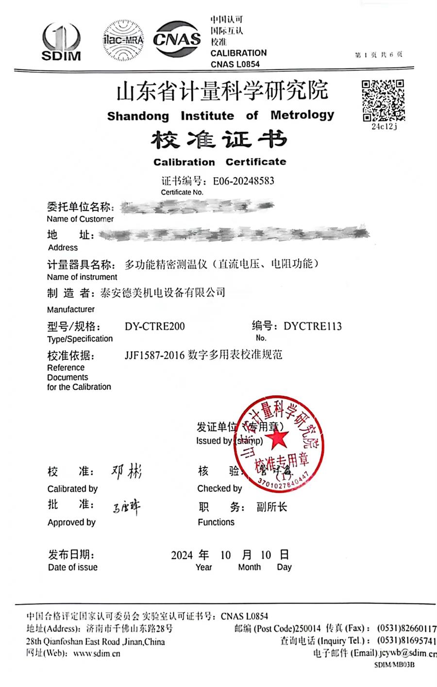 多功能測(cè)溫儀校準(zhǔn)證書 2024-10-11 本文被閱讀 8945 次