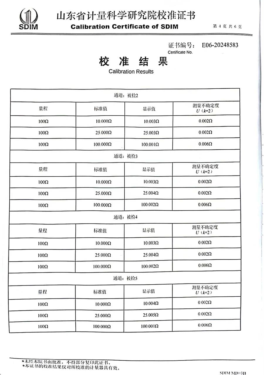 多功能測(cè)溫儀校準(zhǔn)證書