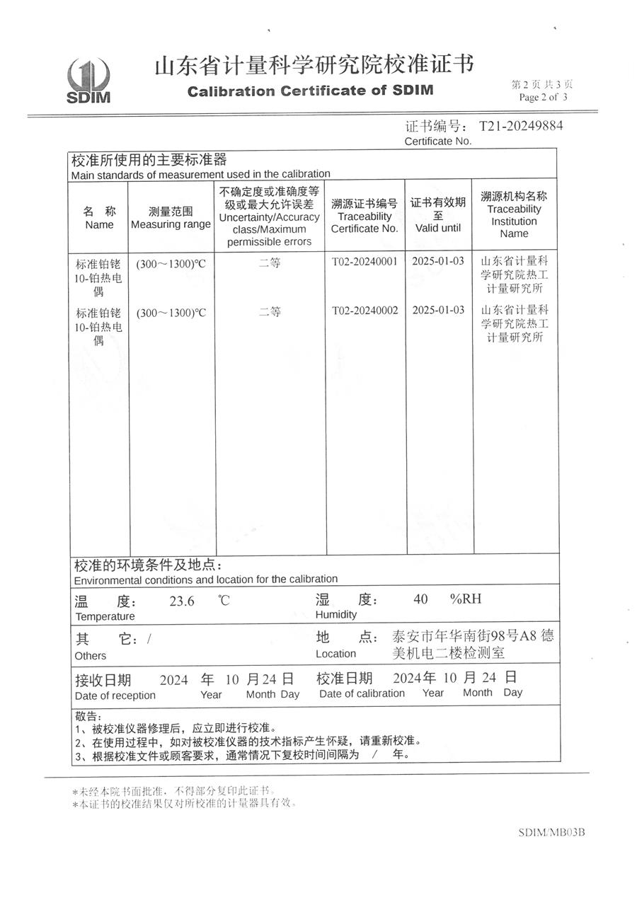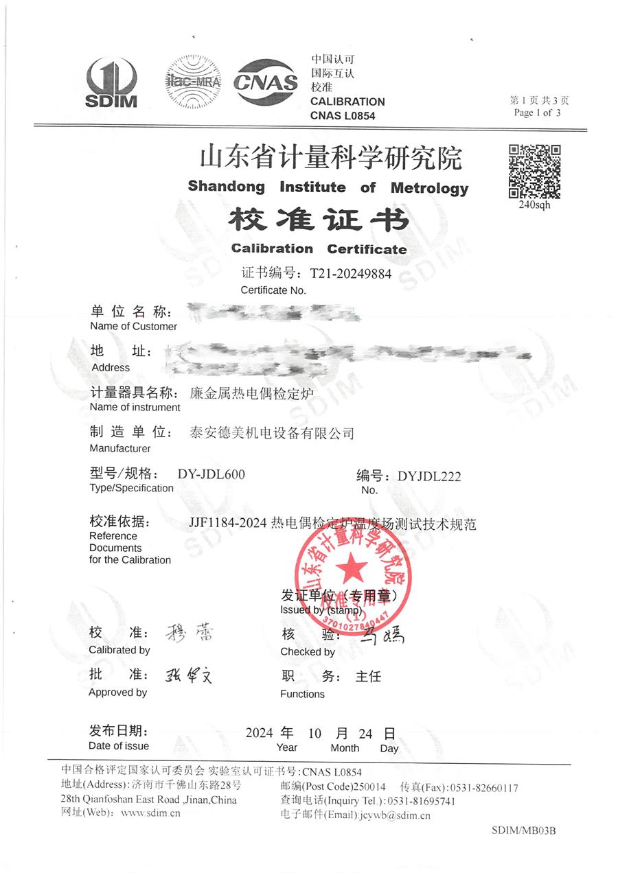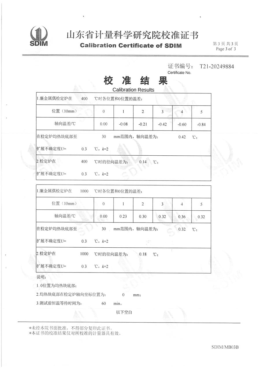 廉金屬熱電偶檢定爐(300-1200℃)校準證書 2024-11-2 本文被閱讀 7106 次