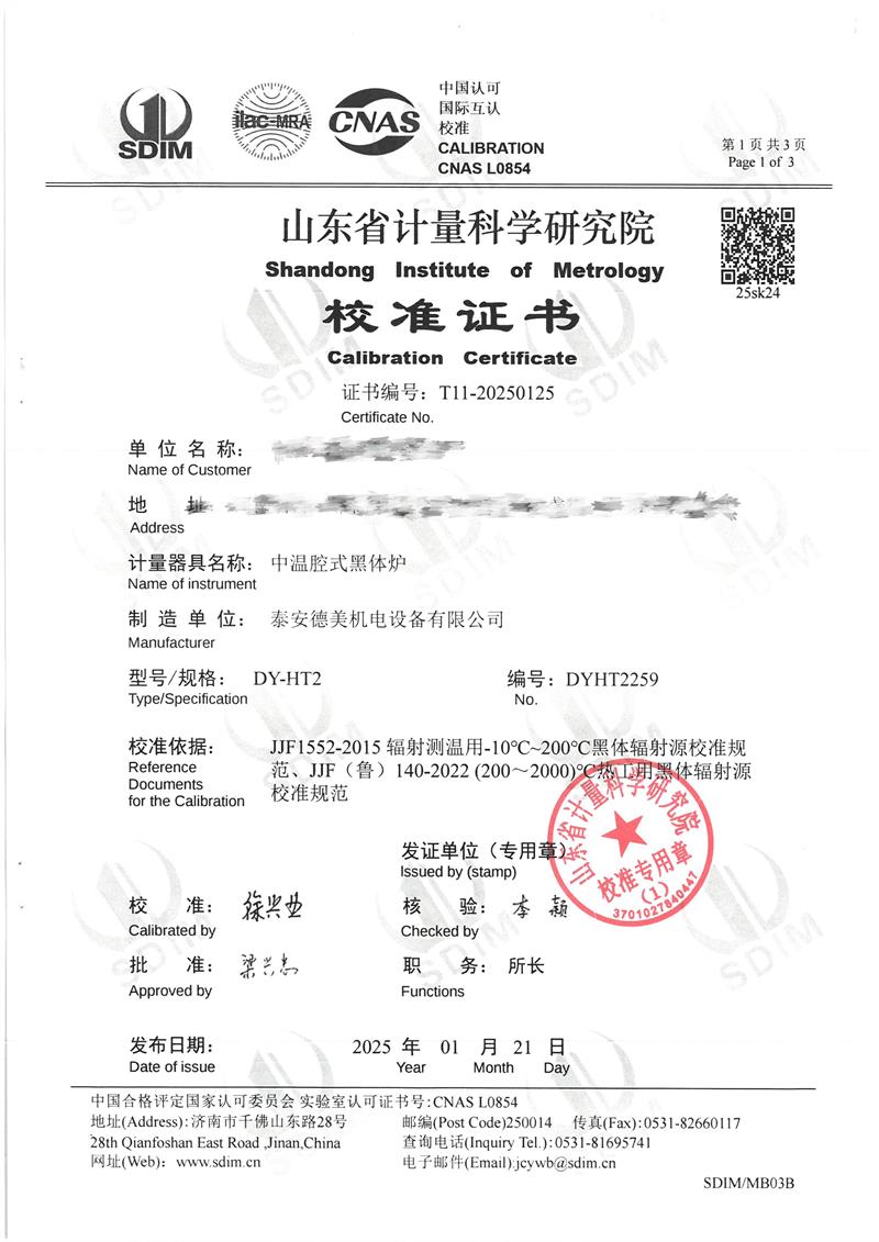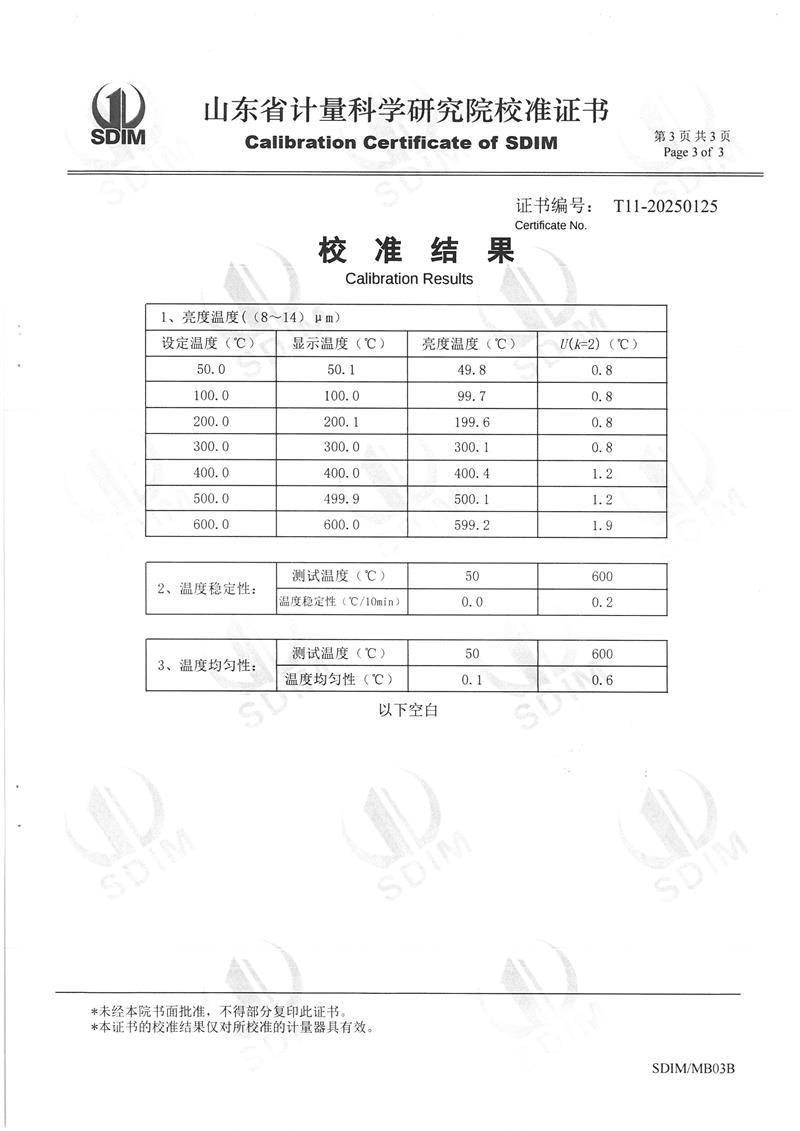 中溫腔式黑體爐(50~600℃)校準證書 2025-1-25 本文被閱讀 6048 次
