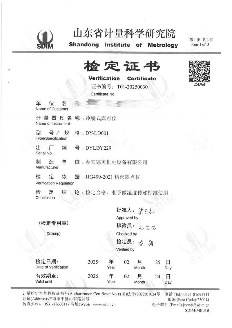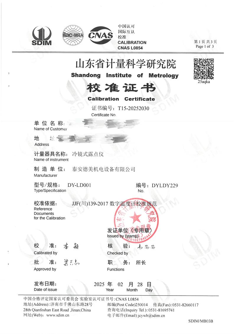 露點(diǎn)儀檢定、校準(zhǔn)證書 2025-3-8 本文被閱讀 4788 次