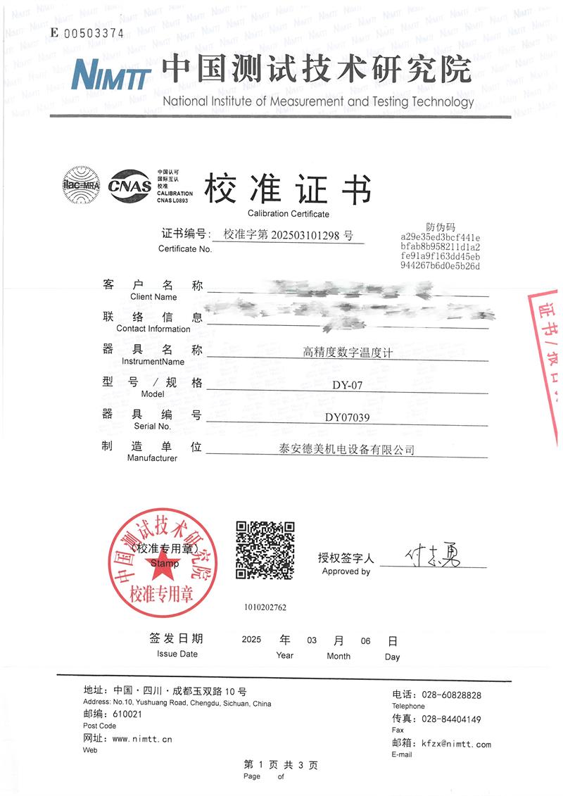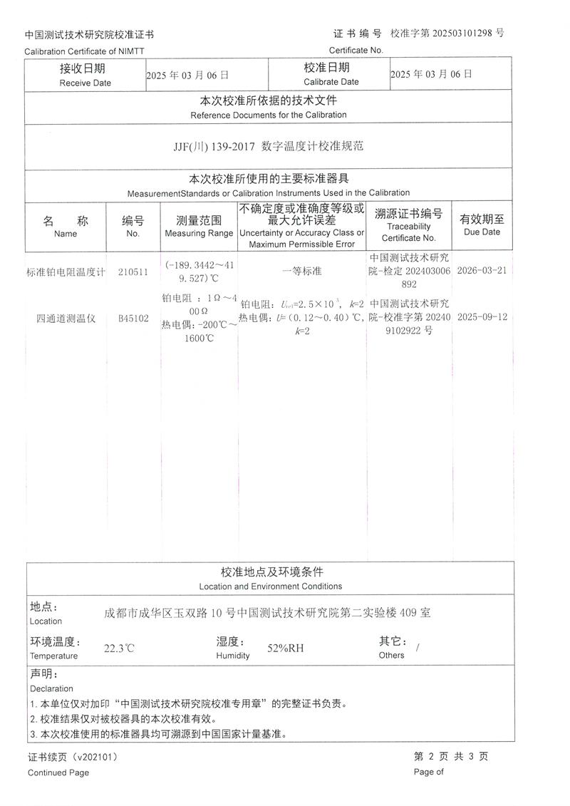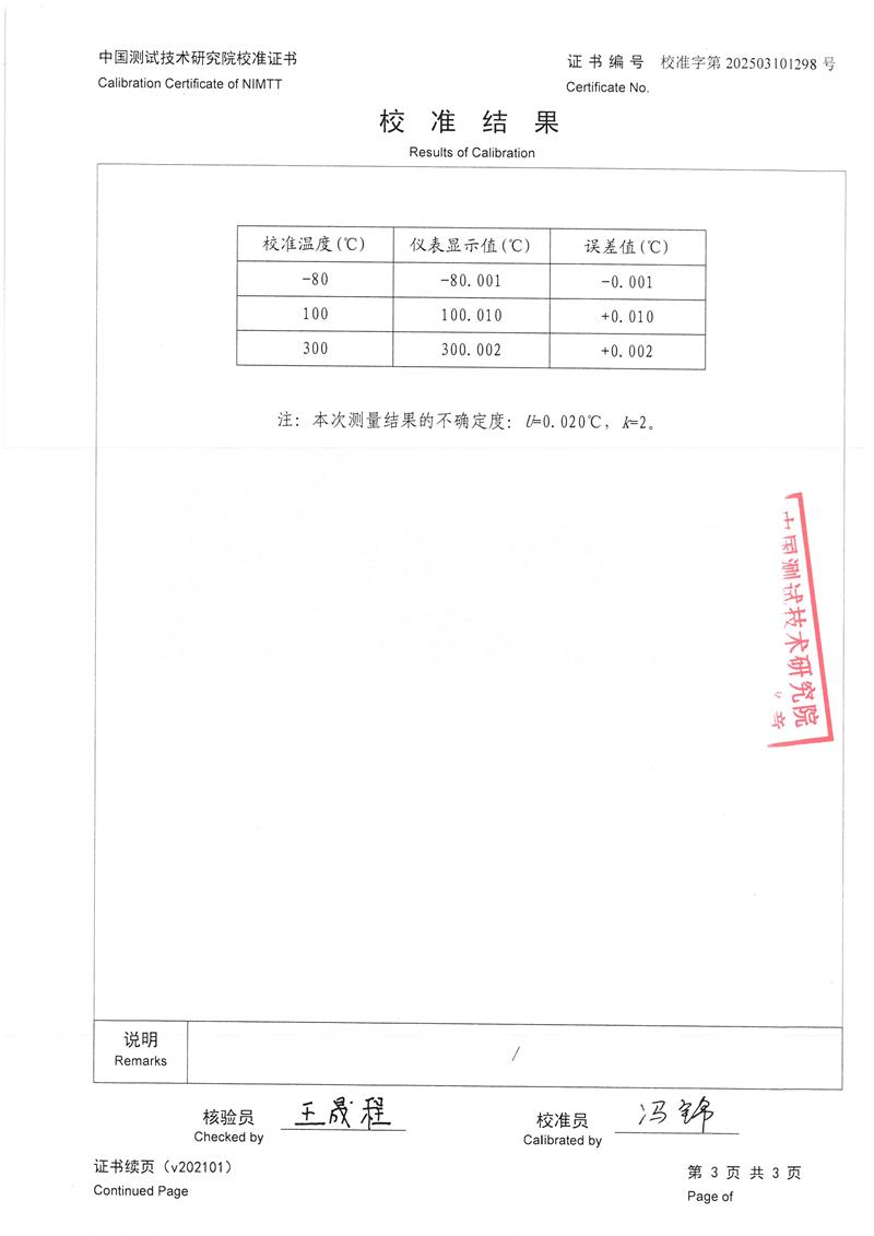高精度數(shù)字溫度計(jì)(-80~300℃)校準(zhǔn)證書 2025-3-10 本文被閱讀 4821 次