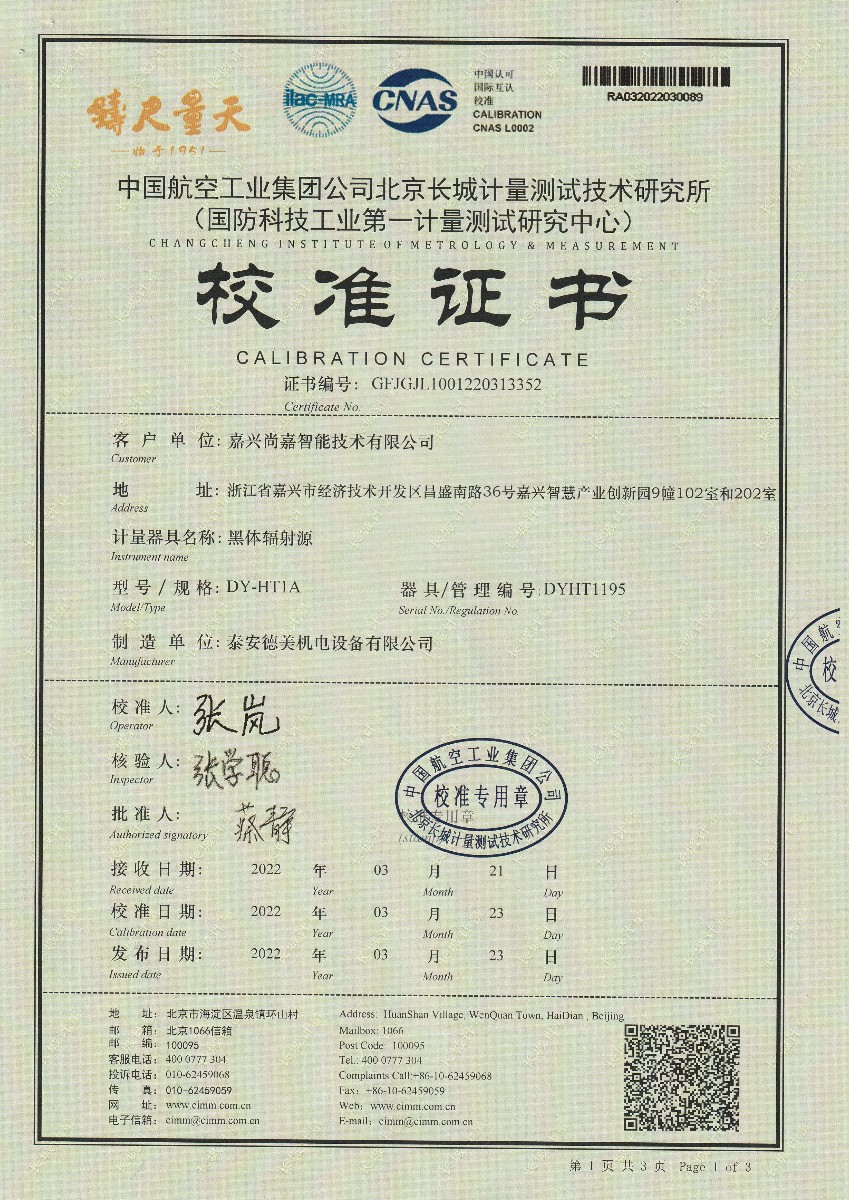 嘉興尚嘉智能技術(shù)有限公司-黑體輻射源(DY-HT1A) 2022-3-29 本文被閱讀 13957 次