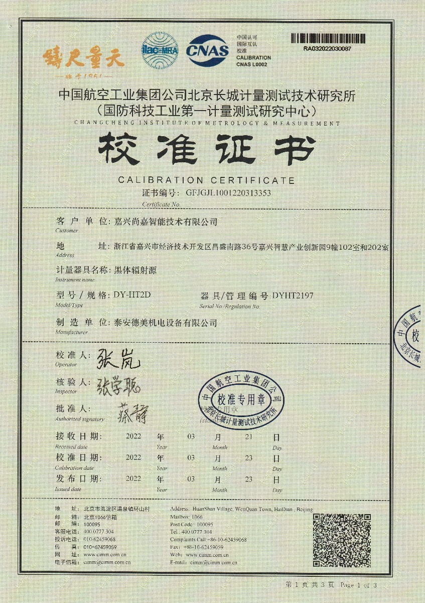 嘉興尚嘉智能技術有限公司黑體輻射源(DY-HT2D) 2022-3-29 本文被閱讀 12547 次