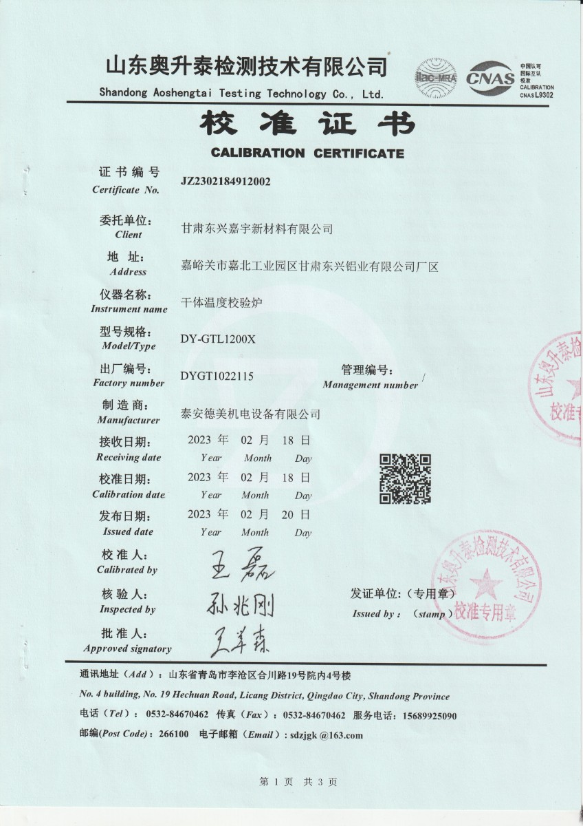| 上一條:甘肅東興嘉宇新材料有限公司 干體溫度校驗(yàn)爐 校準(zhǔn)證書(1) | 下一條:DY-HT2M-C高溫面源黑體爐(100mm) |