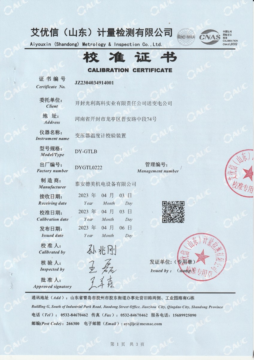 | 上一條:中財(cái)鋰膜(南京)有限公司 中溫干體爐 校準(zhǔn)證書(shū) | 下一條:DY-HT2M-C高溫面源黑體爐(100mm) |