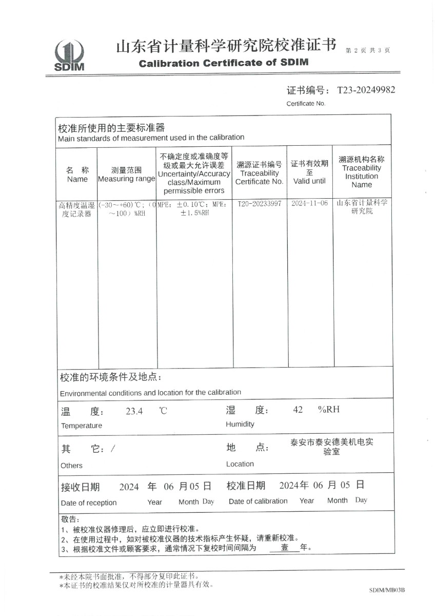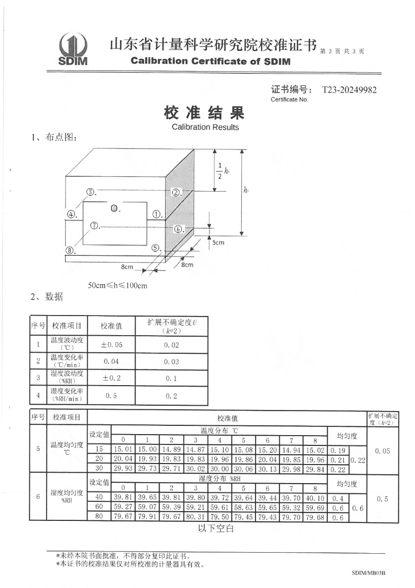 溫濕度檢定箱(-20~65℃)校準(zhǔn)證書 2024-6-11 本文被閱讀 7318 次