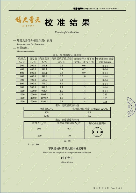 腔式黑體輻射源(300-1200℃)304所證書 2024-6-18 本文被閱讀 7339 次