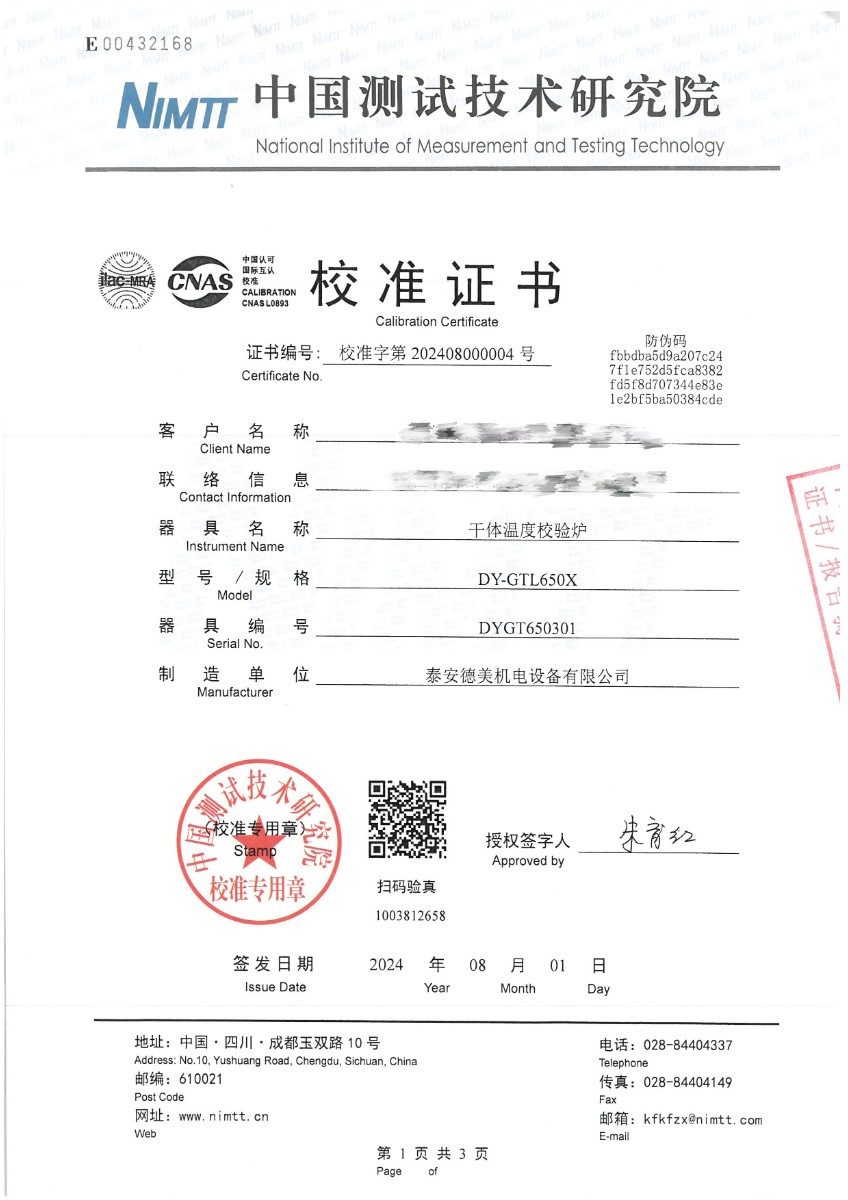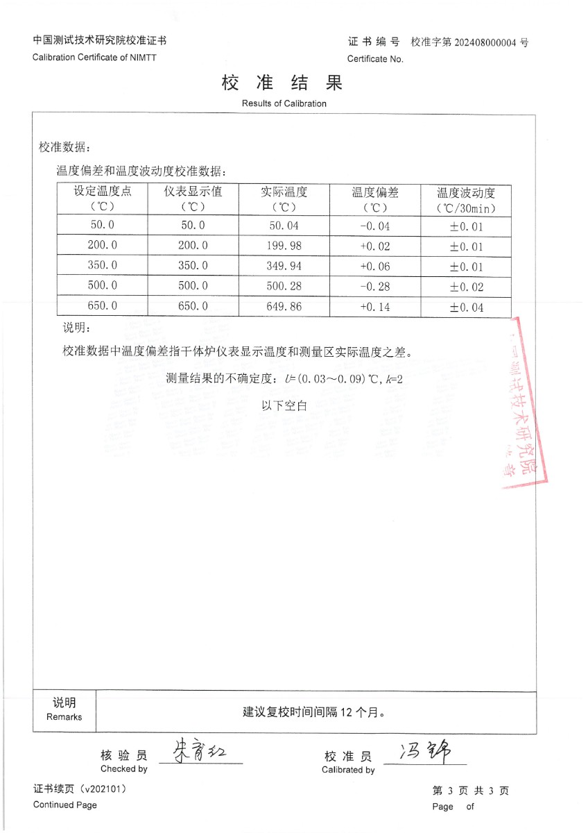 干體爐301(室溫+5℃~650℃)校準證書 2024-8-5 本文被閱讀 7919 次