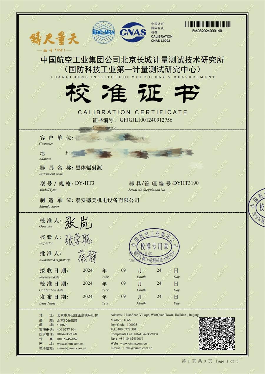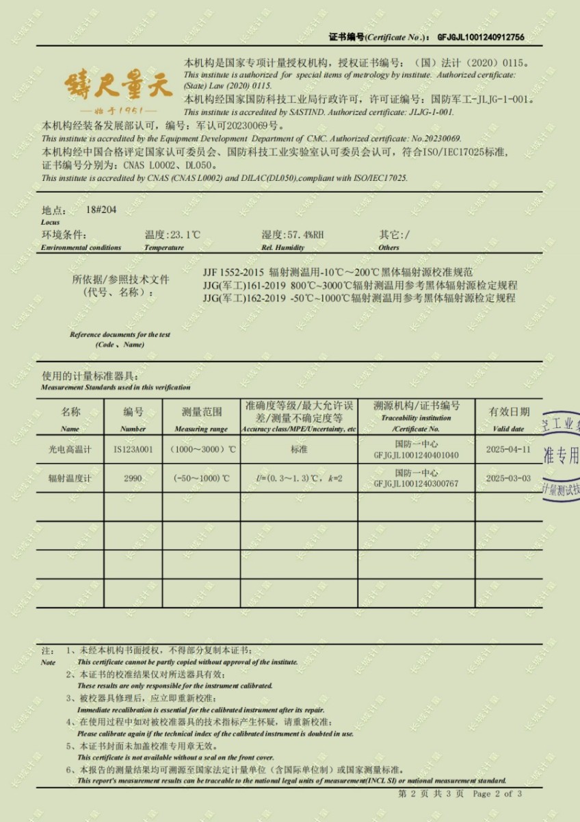 黑體輻射源(50-1200℃)校準(zhǔn)證書 2024-10-17 本文被閱讀 6350 次