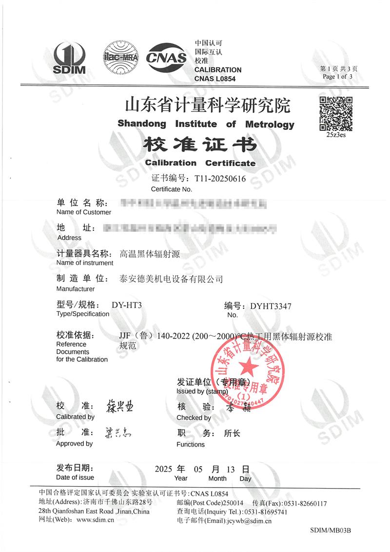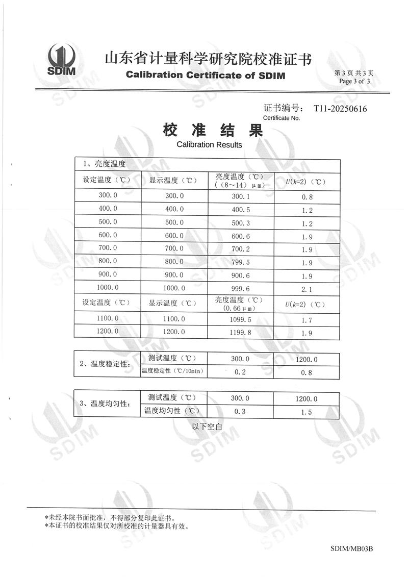 高溫黑體爐(300~1200℃)校準證書 2025-5-16 本文被閱讀 4150 次