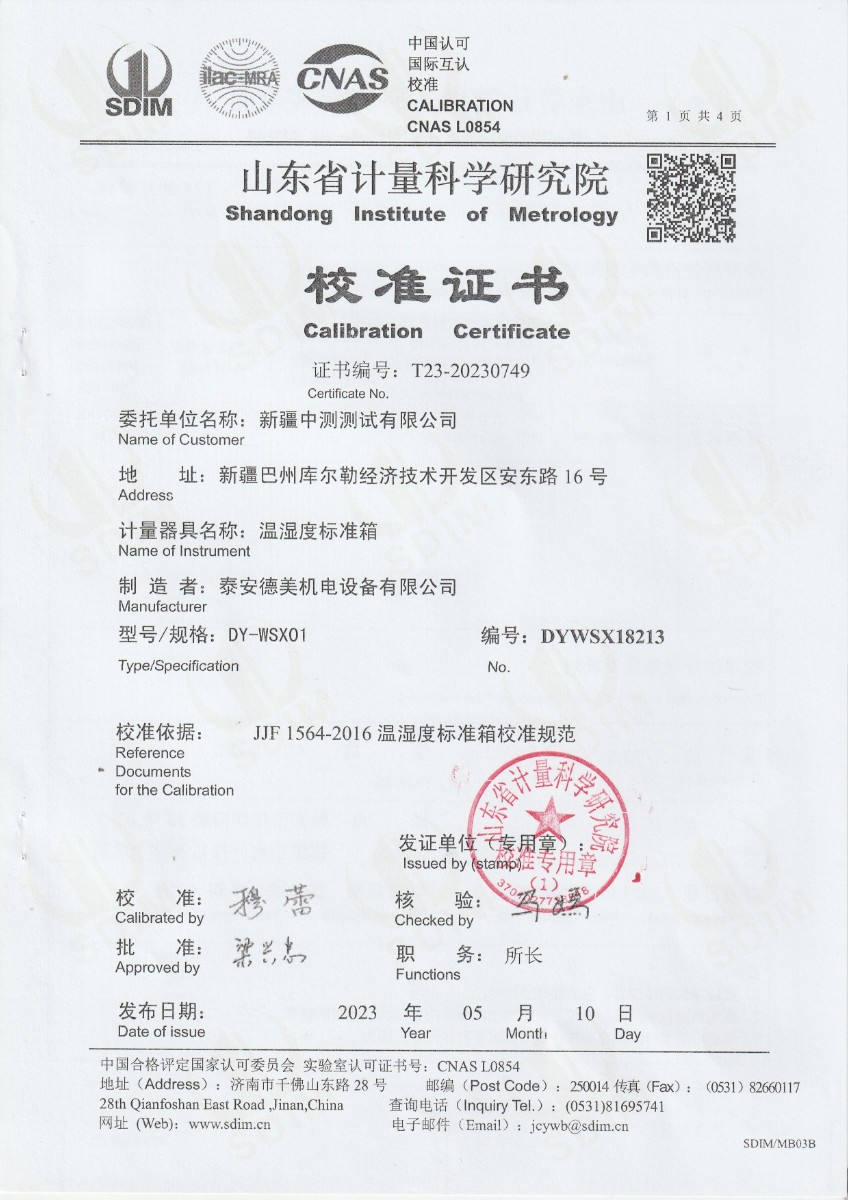 | 上一條:越南晶科能源實業(yè)有限責(zé)任公司 溫濕度標(biāo)準箱 校準證書 | 下一條:DY-HT2M-C高溫面源黑體爐(100mm) |