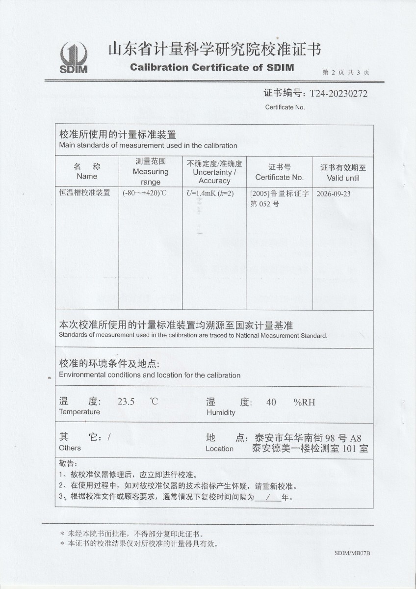 魯南中聯(lián)水泥有限公司 便攜式恒溫油槽 校準證書 2023-6-1 本文被閱讀 11898 次