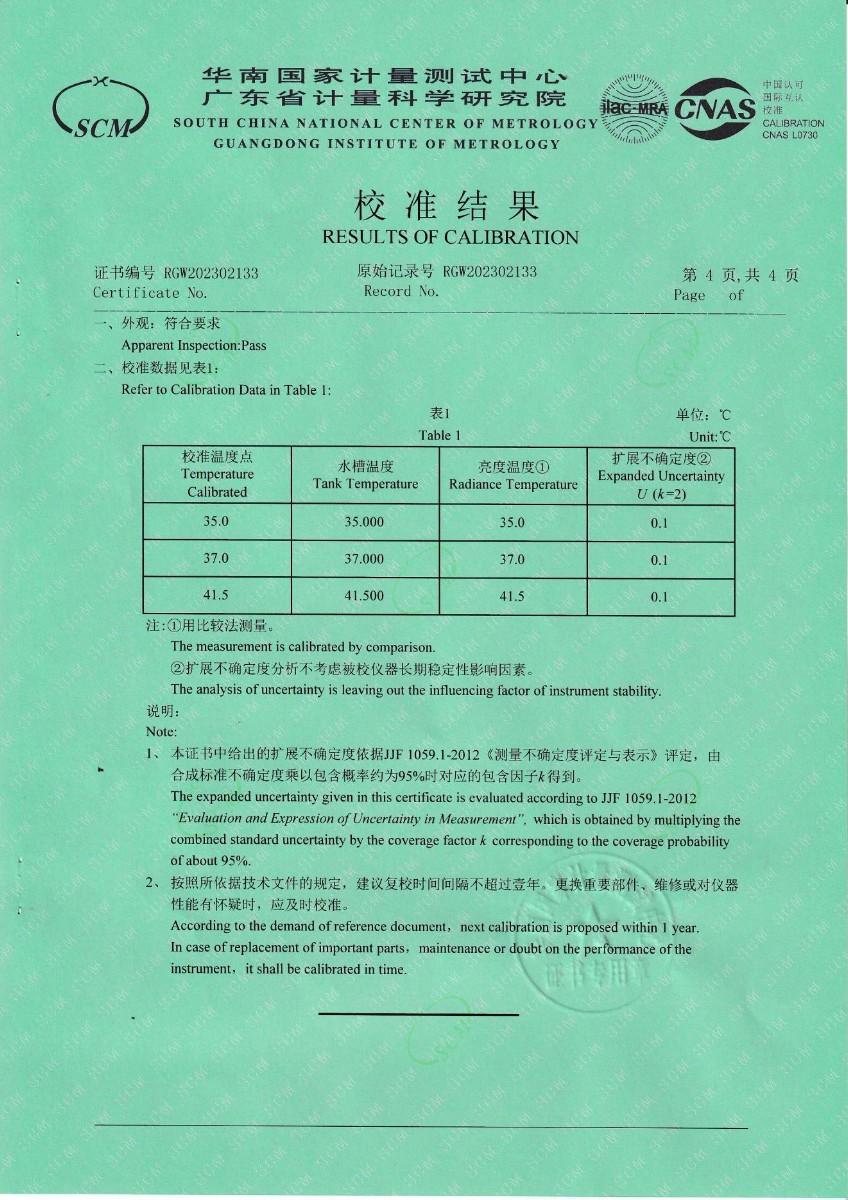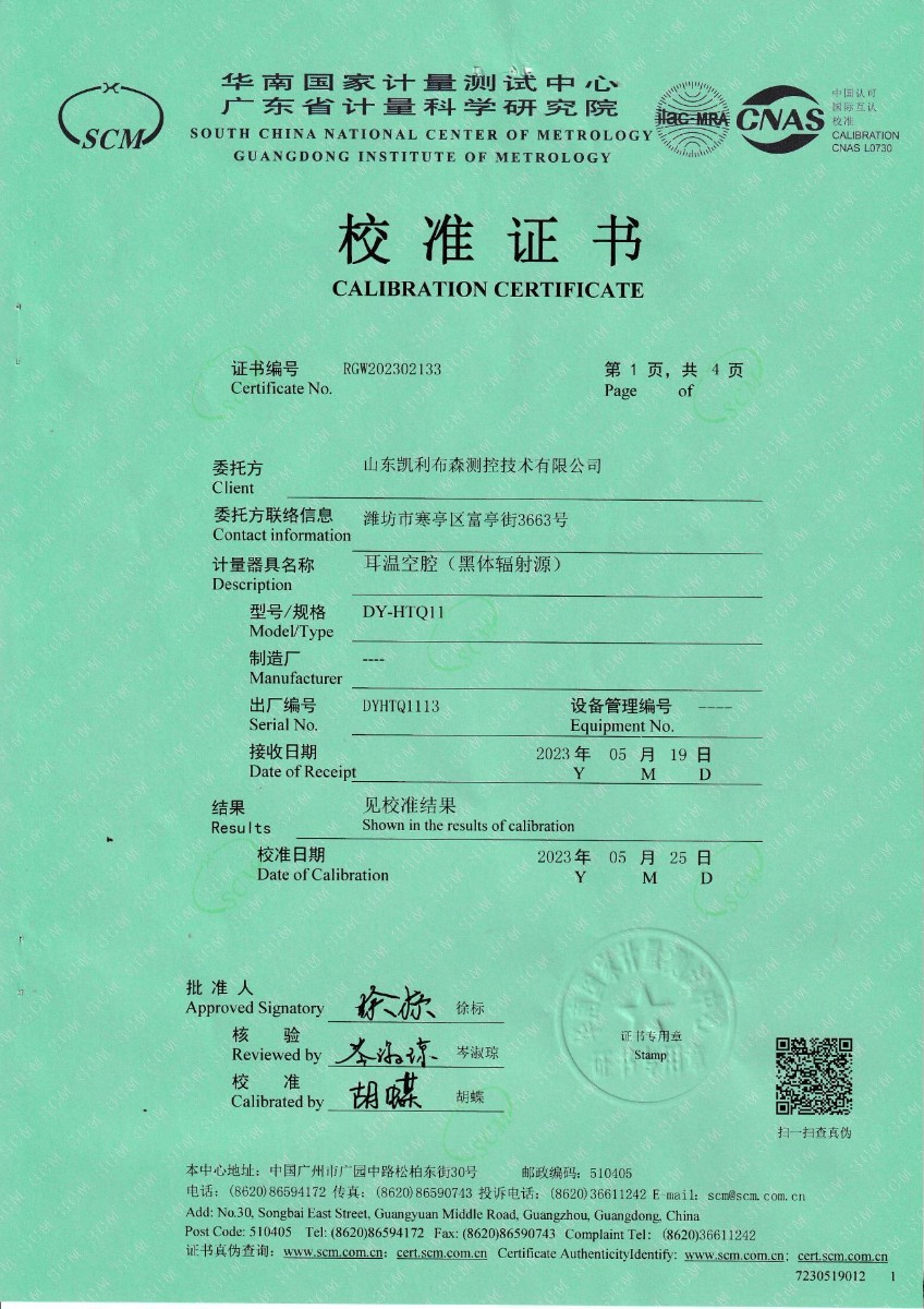 | 上一條:山東凱利布森測(cè)控技術(shù)有限公司 額溫空腔(黑體輻射源) 校準(zhǔn)證書(shū) | 下一條:DY-HT2M-C高溫面源黑體爐(100mm) |