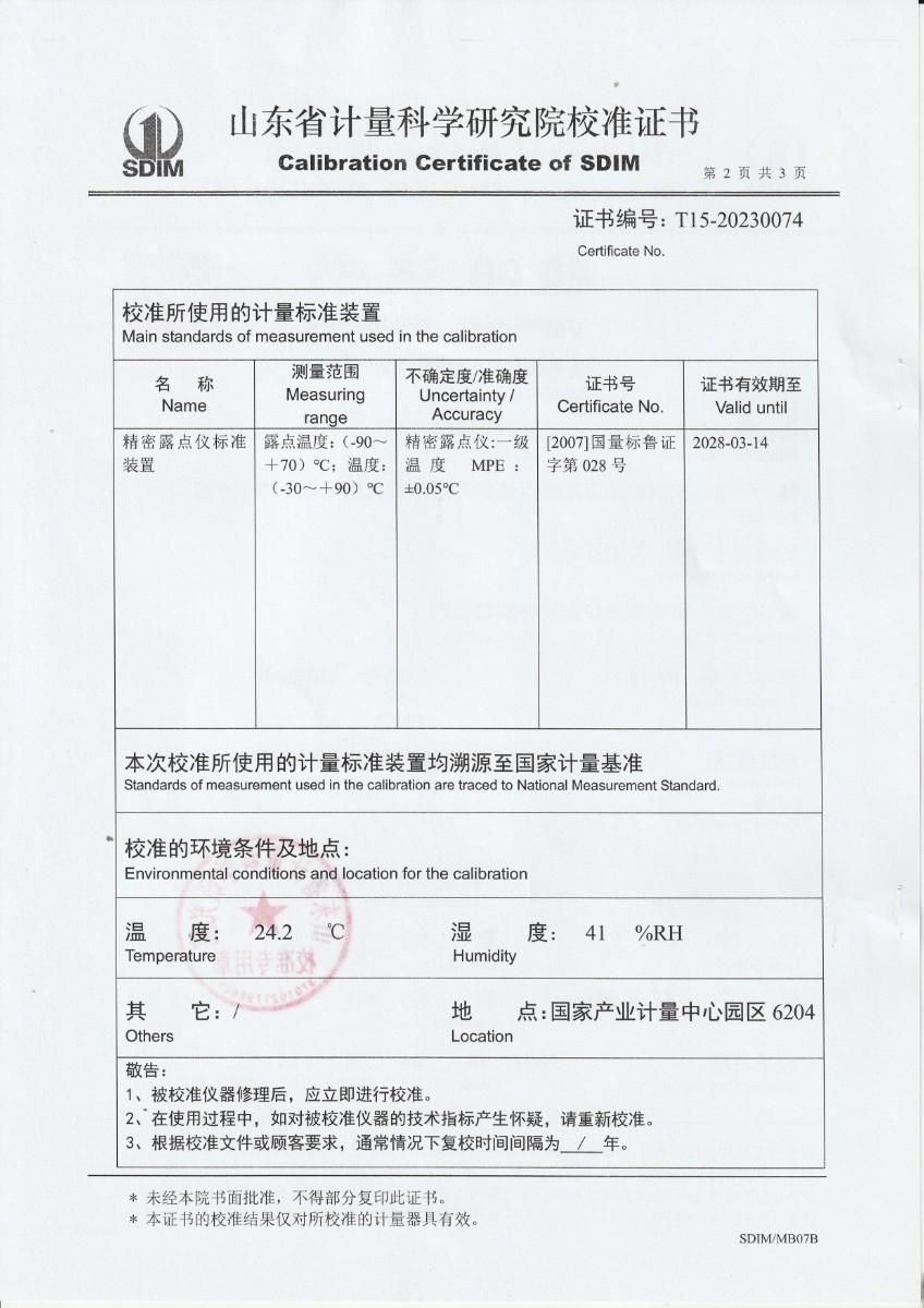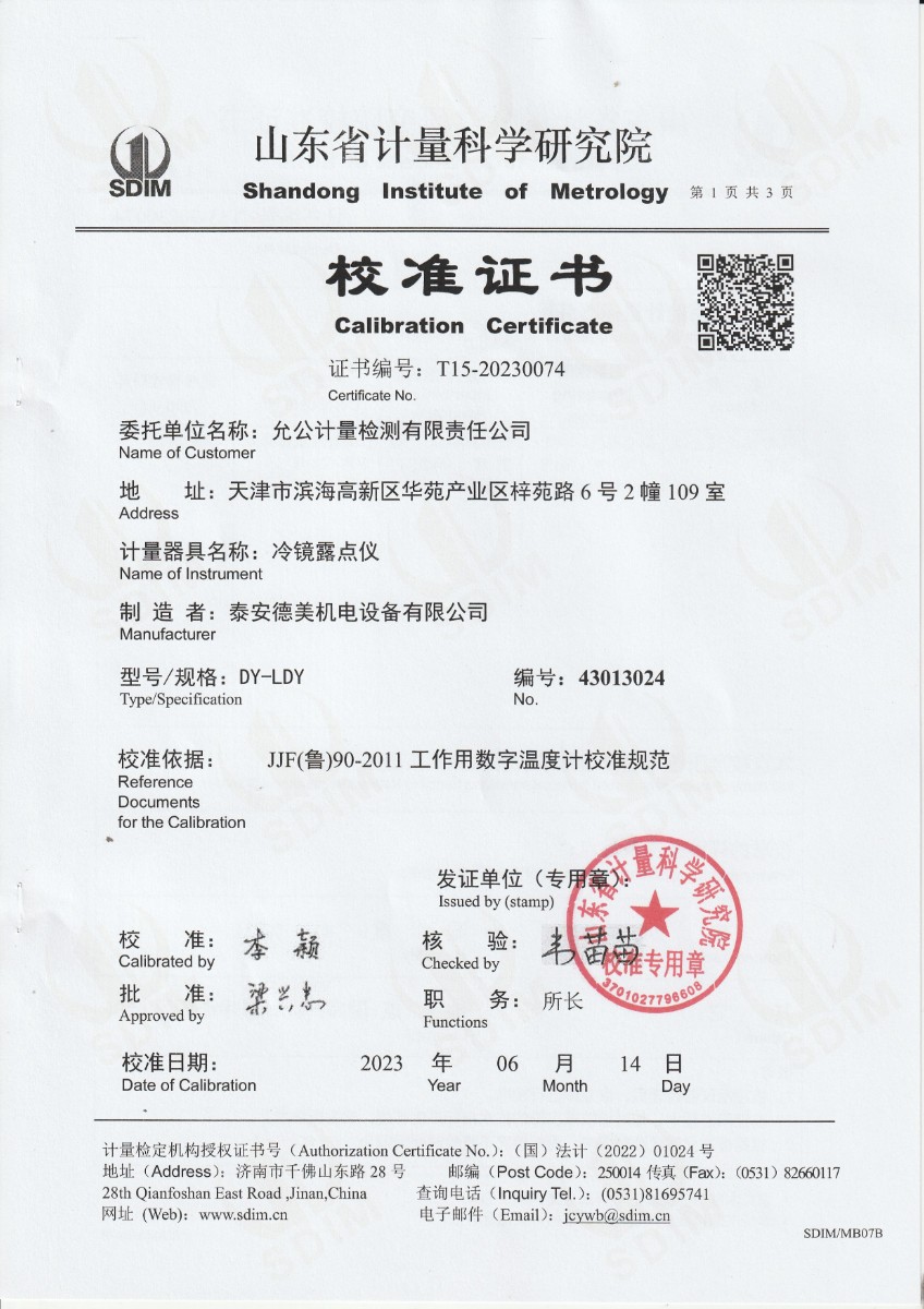 允公計量檢測有限責任公司-冷鏡露點儀校準證書 2023-6-25 本文被閱讀 14303 次