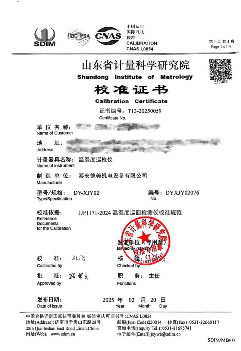 溫濕度巡檢儀校準(zhǔn)證書 2025-2-22 本文被閱讀 5540 次