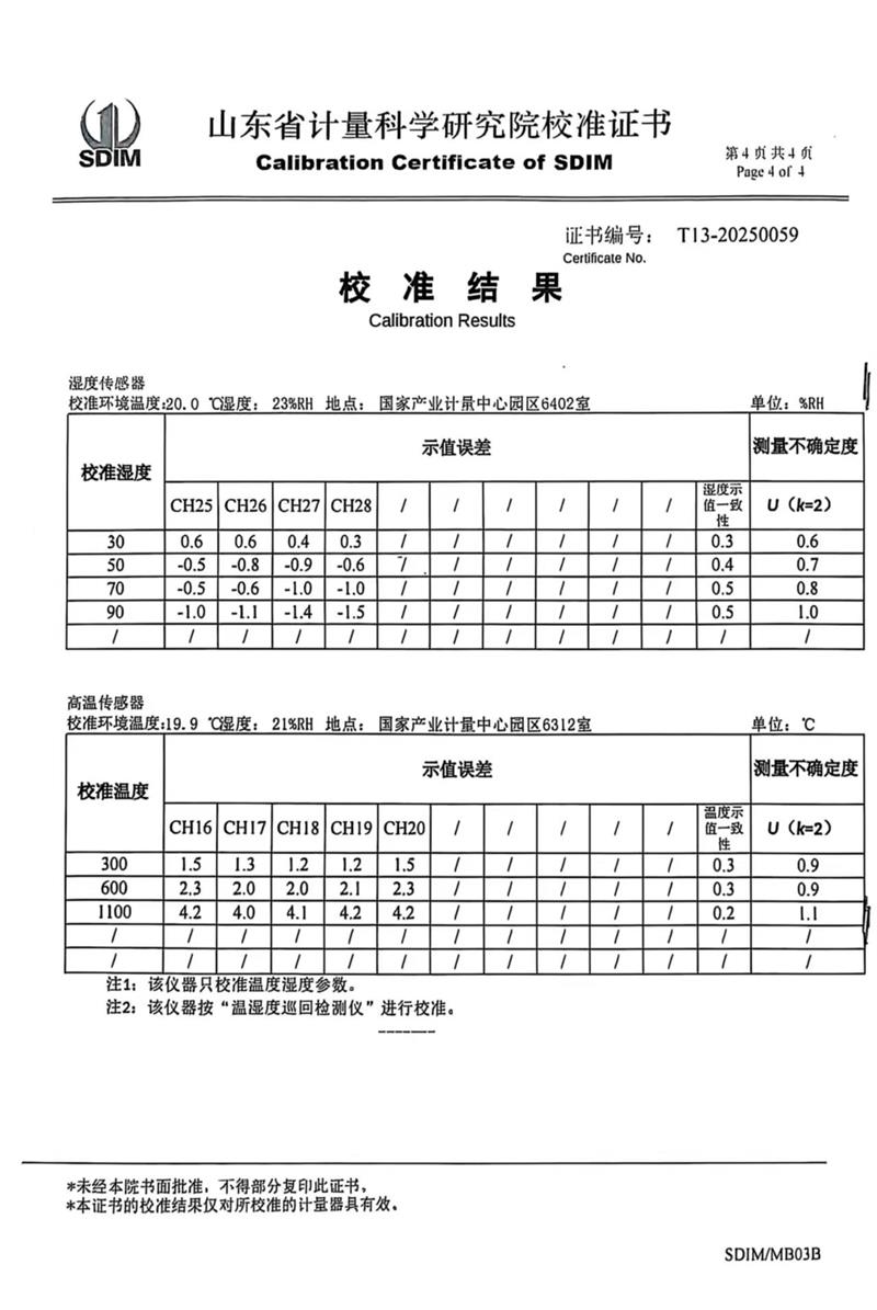 溫濕度巡檢儀校準(zhǔn)證書