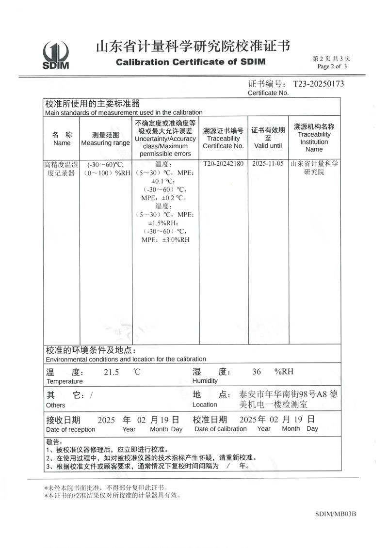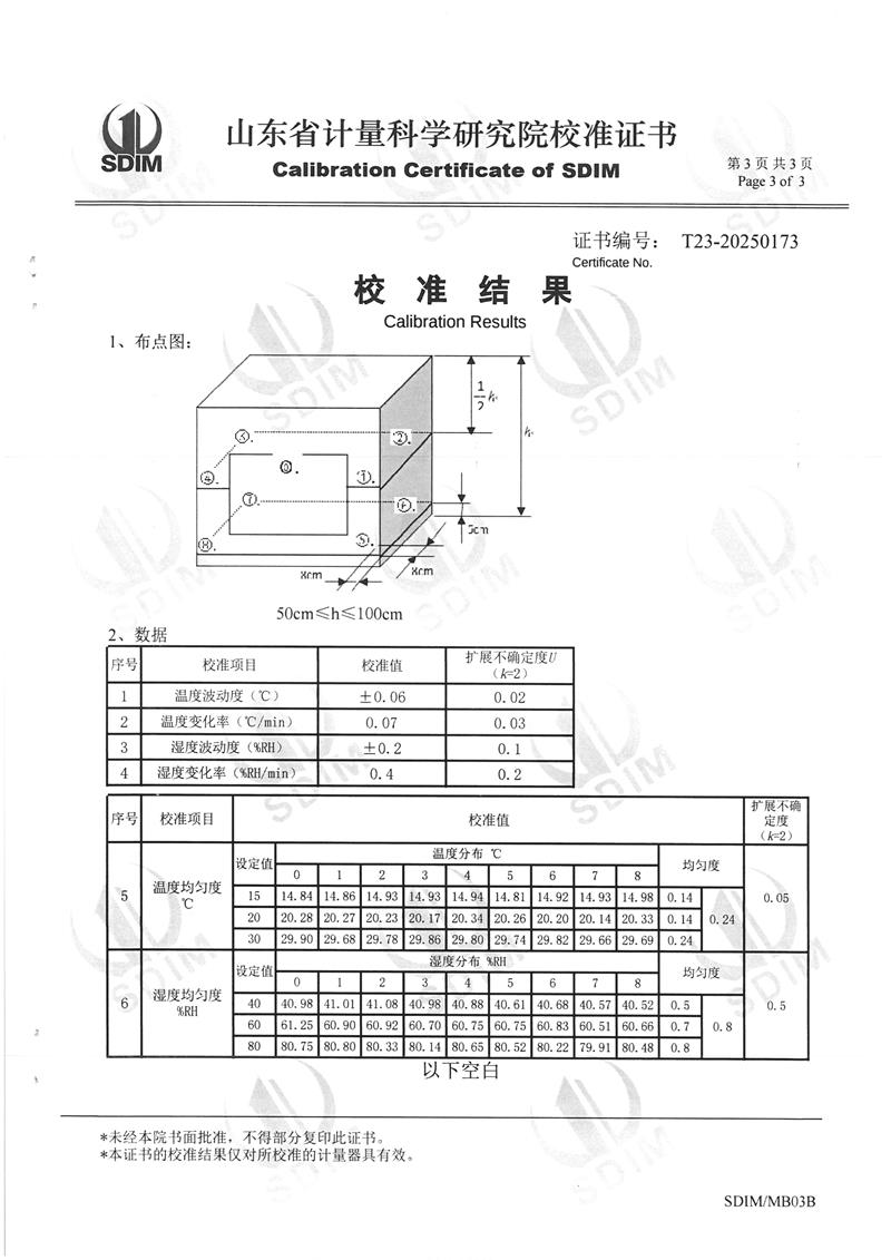 溫濕度檢定箱(-5~65℃)校準(zhǔn)證書 2025-2-26 本文被閱讀 5757 次