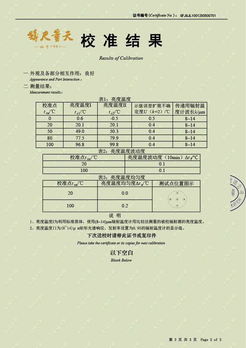 差分黑體爐(0-100℃)校準(zhǔn)證書 2025-5-9 本文被閱讀 4274 次